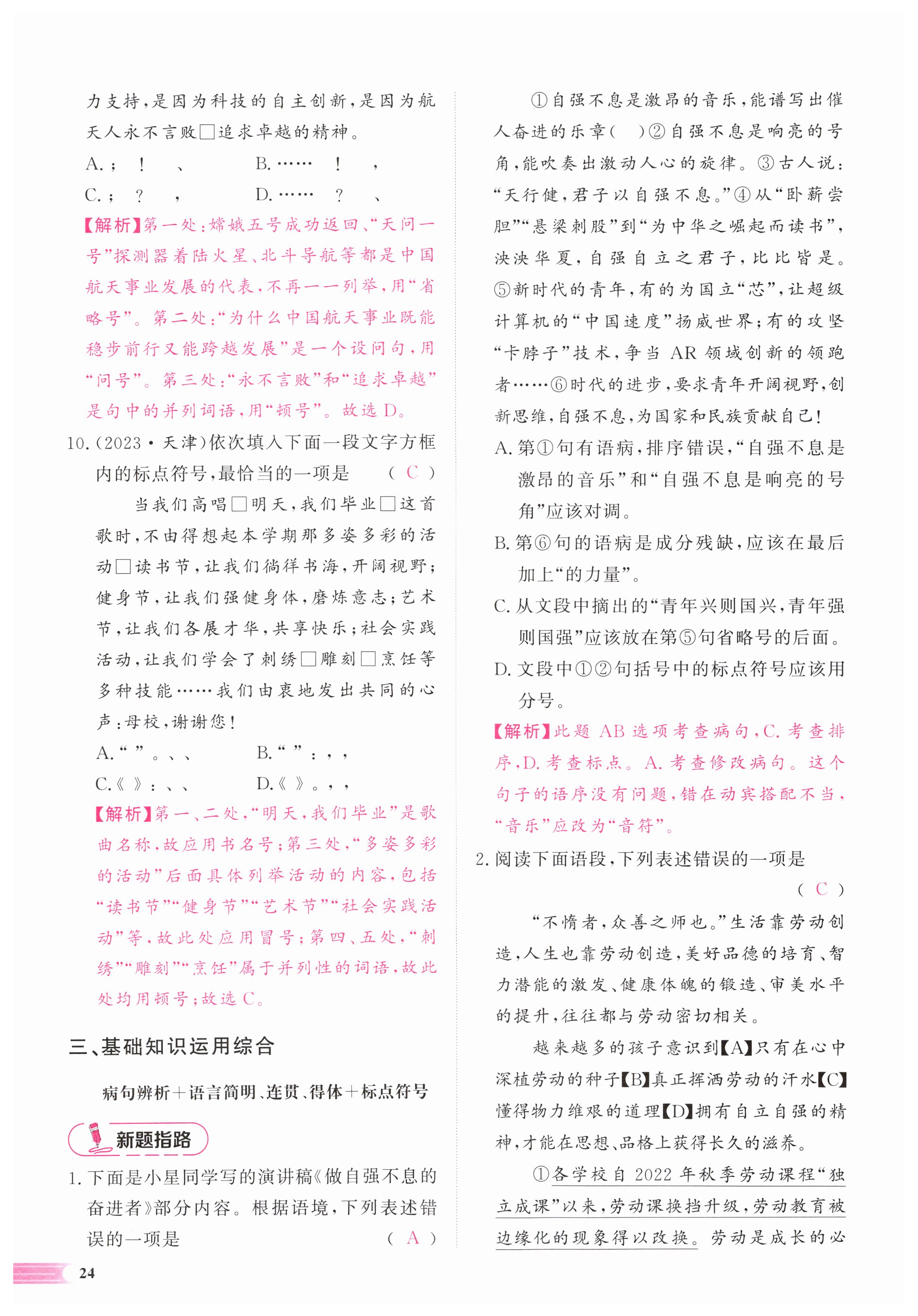 注:目前有些书本章节名称可能整理的还不是很完善,但都是按照顺序排列的,请同学们按照顺序仔细查找。练习册 2024年中考启航语文湖南专版 答案主要是用来给同学们做完题方便对答案用的,请勿直接抄袭。