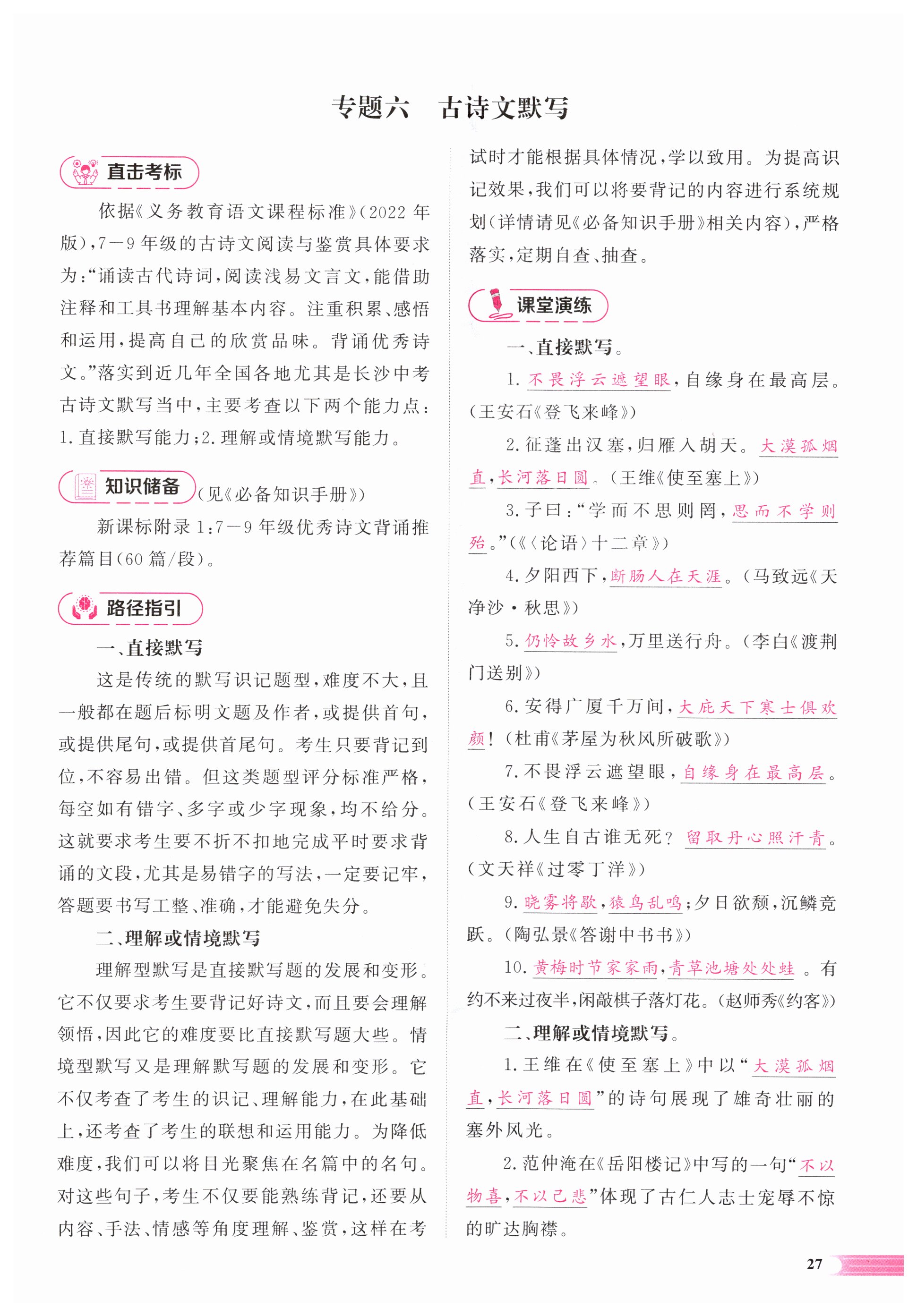 注:目前有些书本章节名称可能整理的还不是很完善,但都是按照顺序排列的,请同学们按照顺序仔细查找。练习册 2024年中考启航语文湖南专版 答案主要是用来给同学们做完题方便对答案用的,请勿直接抄袭。