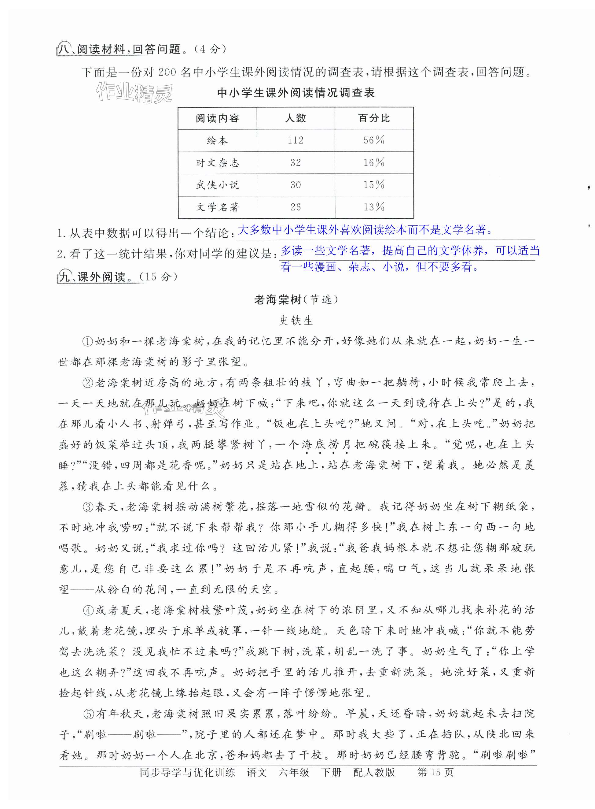 注:目前有些书本章节名称可能整理的还不是很完善,但都是按照顺序排列的,请同学们按照顺序仔细查找。练习册 2024年同步导学与优化训练六年级语文下册人教版 答案主要是用来给同学们做完题方便对答案用的,请勿直接抄袭。