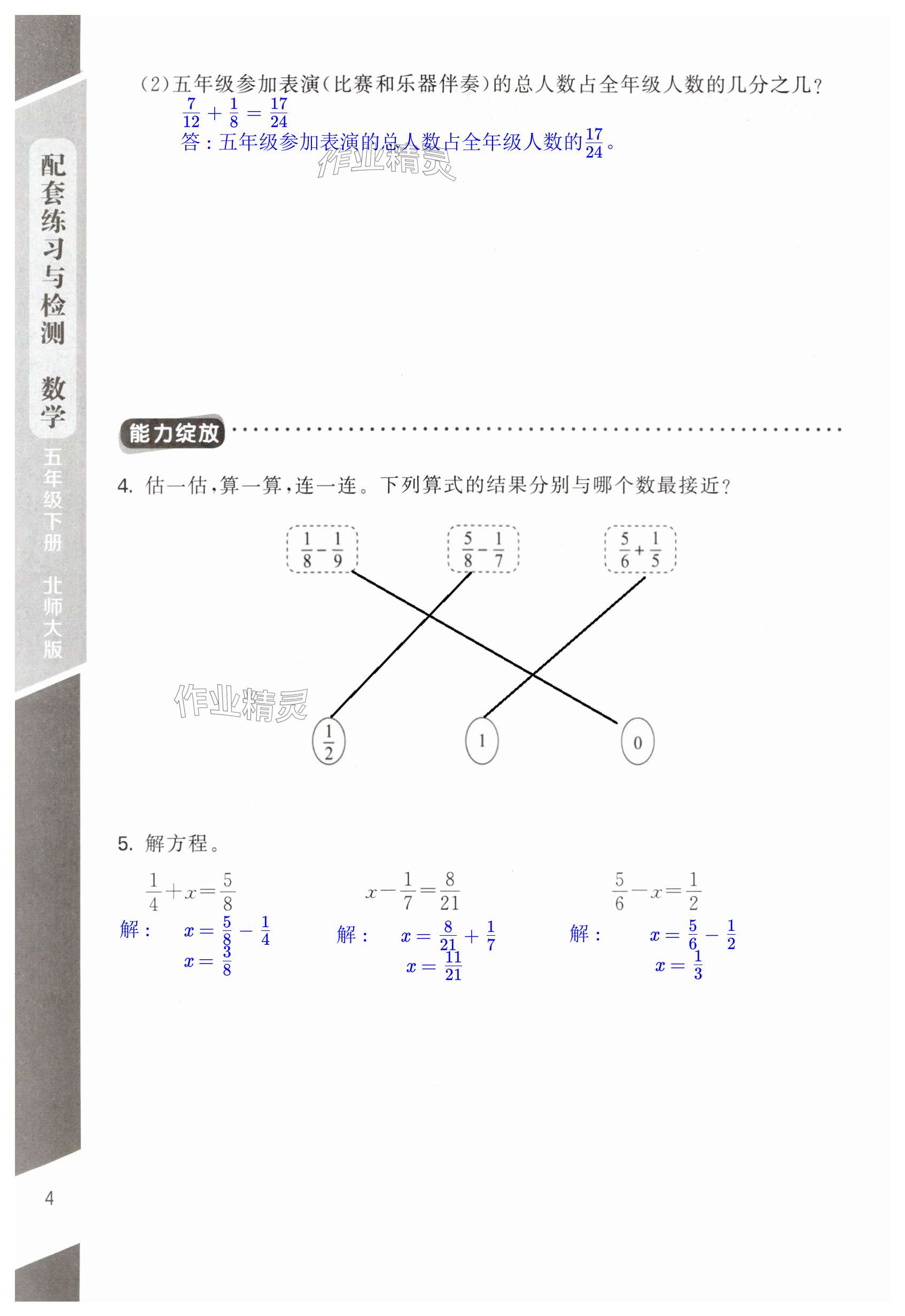 注:目前有些书本章节名称可能整理的还不是很完善,但都是按照顺序排列的,请同学们按照顺序仔细查找。练习册 2024年配套练习与检测五年级数学下册北师大版 答案主要是用来给同学们做完题方便对答案用的,请勿直接抄袭。