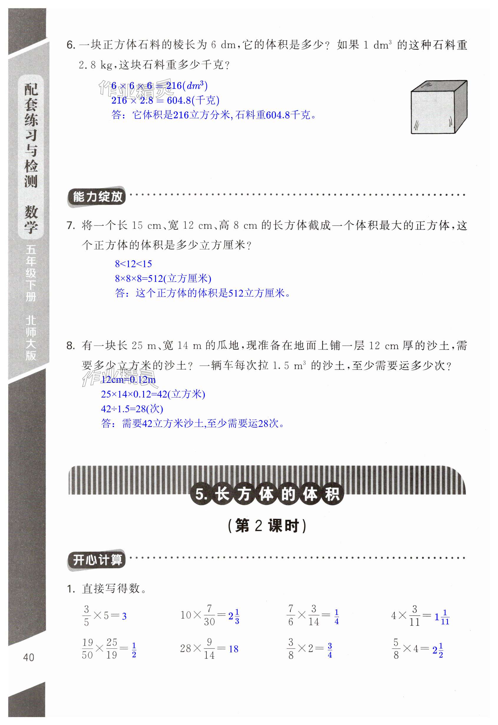 注:目前有些书本章节名称可能整理的还不是很完善,但都是按照顺序排列的,请同学们按照顺序仔细查找。练习册 2024年配套练习与检测五年级数学下册北师大版 答案主要是用来给同学们做完题方便对答案用的,请勿直接抄袭。