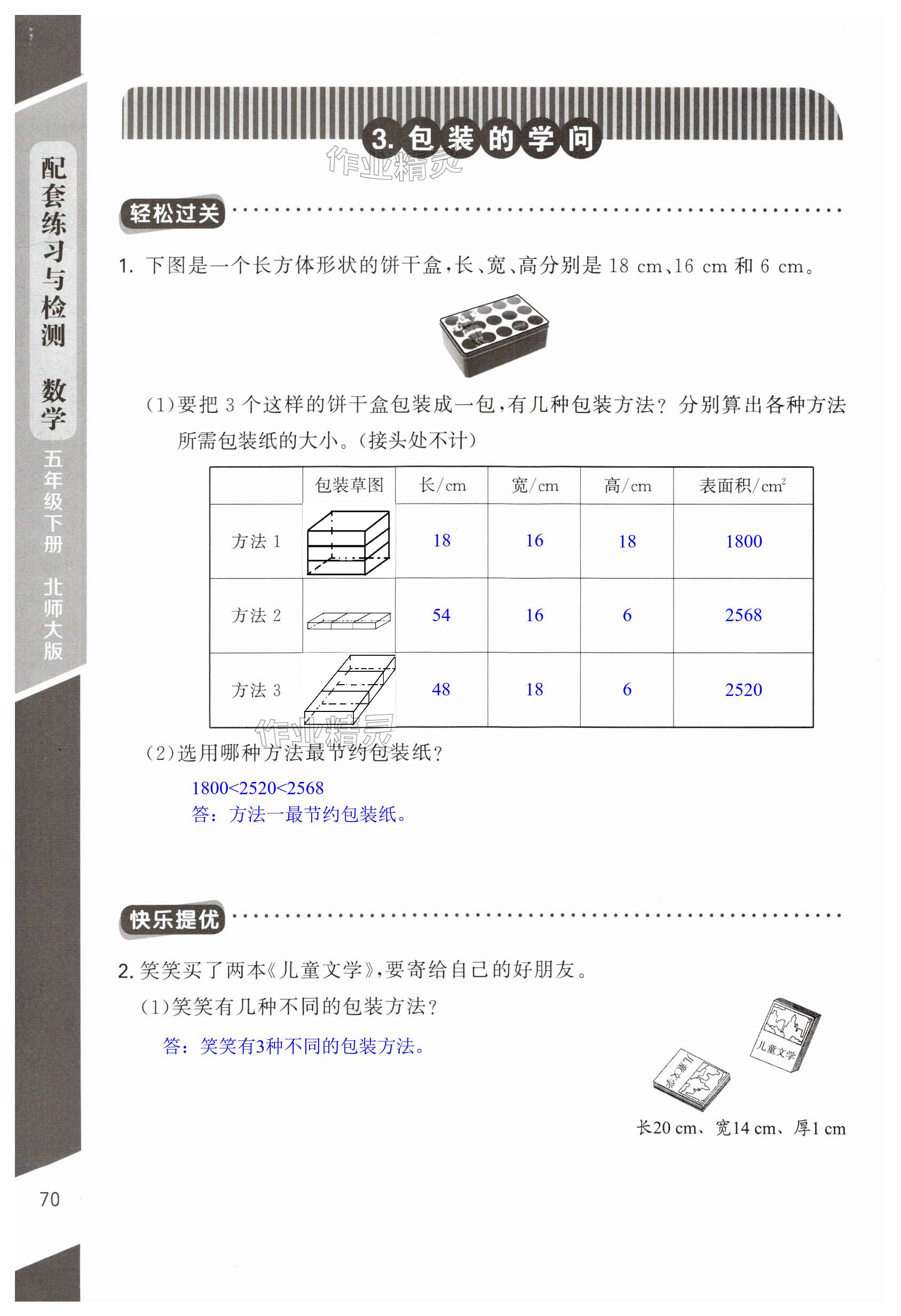 注:目前有些书本章节名称可能整理的还不是很完善,但都是按照顺序排列的,请同学们按照顺序仔细查找。练习册 2024年配套练习与检测五年级数学下册北师大版 答案主要是用来给同学们做完题方便对答案用的,请勿直接抄袭。