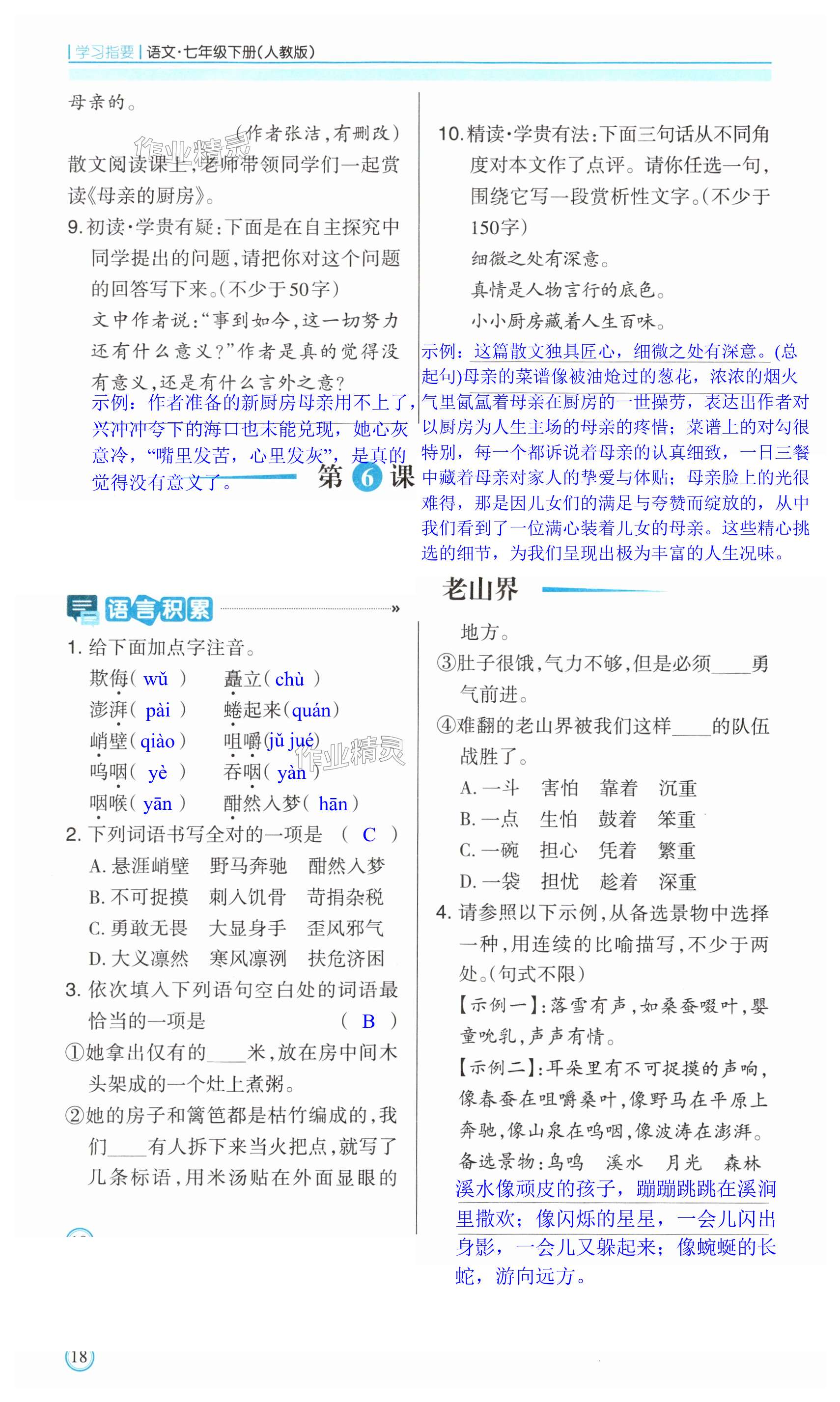 注:目前有些书本章节名称可能整理的还不是很完善,但都是按照顺序排列的,请同学们按照顺序仔细查找。练习册 2024年学习指要七年级语文下册人教版 答案主要是用来给同学们做完题方便对答案用的,请勿直接抄袭。