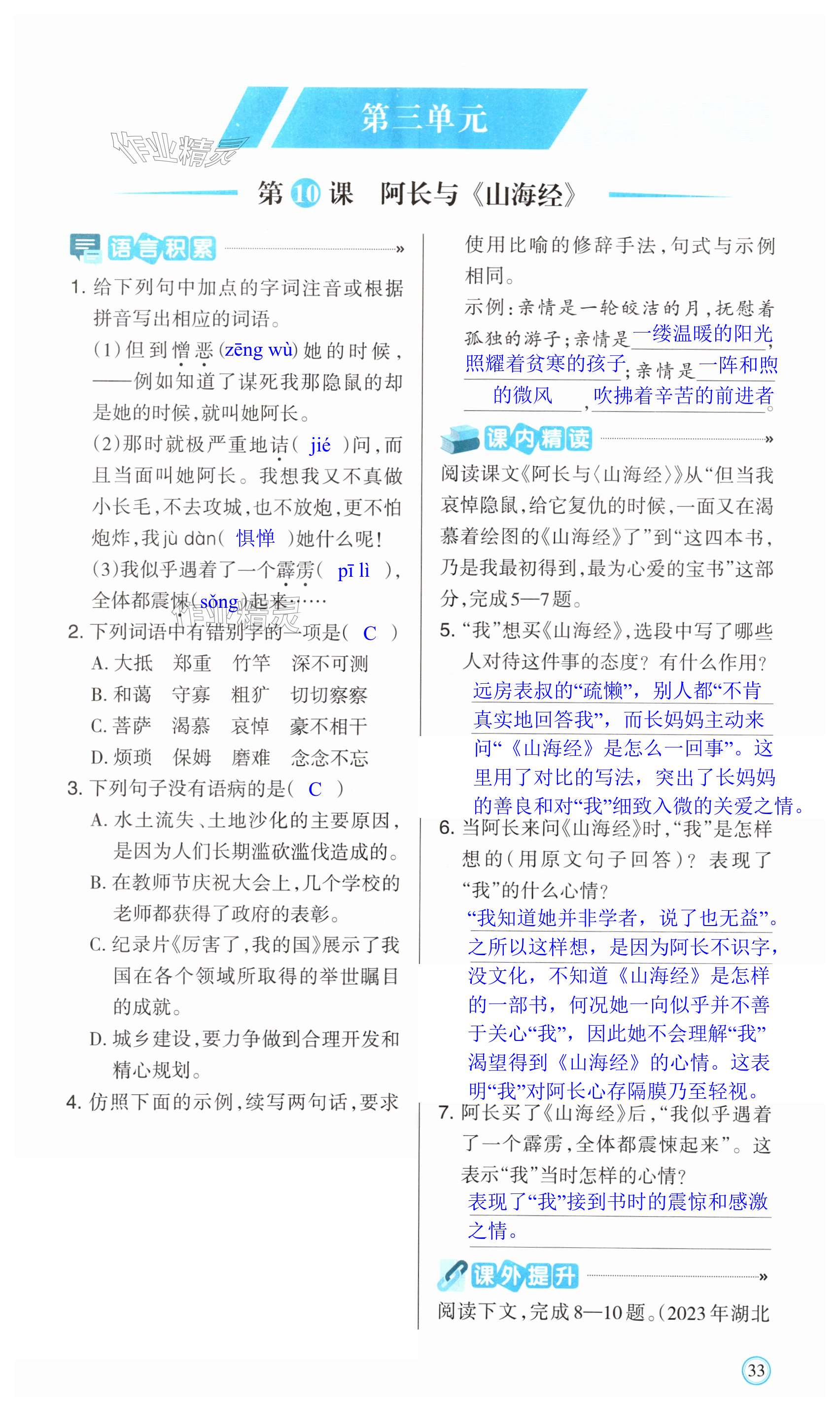 注:目前有些书本章节名称可能整理的还不是很完善,但都是按照顺序排列的,请同学们按照顺序仔细查找。练习册 2024年学习指要七年级语文下册人教版 答案主要是用来给同学们做完题方便对答案用的,请勿直接抄袭。