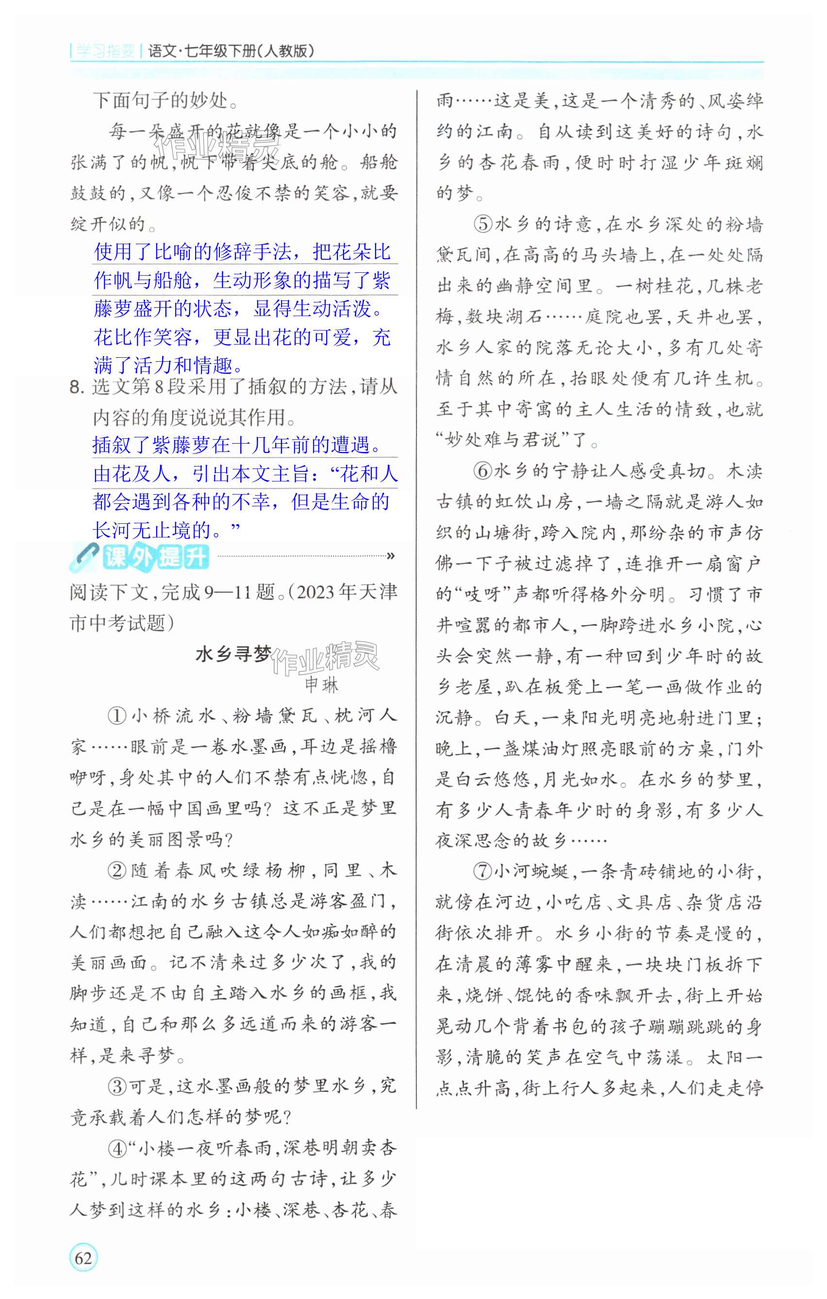 注:目前有些书本章节名称可能整理的还不是很完善,但都是按照顺序排列的,请同学们按照顺序仔细查找。练习册 2024年学习指要七年级语文下册人教版 答案主要是用来给同学们做完题方便对答案用的,请勿直接抄袭。