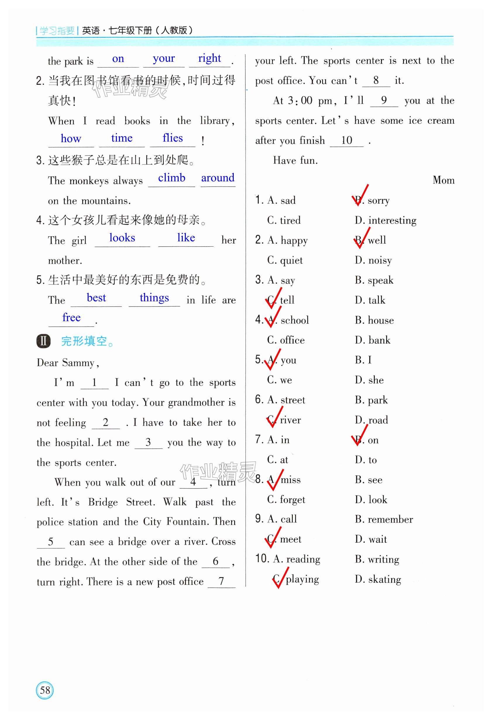 注:目前有些书本章节名称可能整理的还不是很完善,但都是按照顺序排列的,请同学们按照顺序仔细查找。练习册 2024年学习指要七年级英语下册人教版 答案主要是用来给同学们做完题方便对答案用的,请勿直接抄袭。