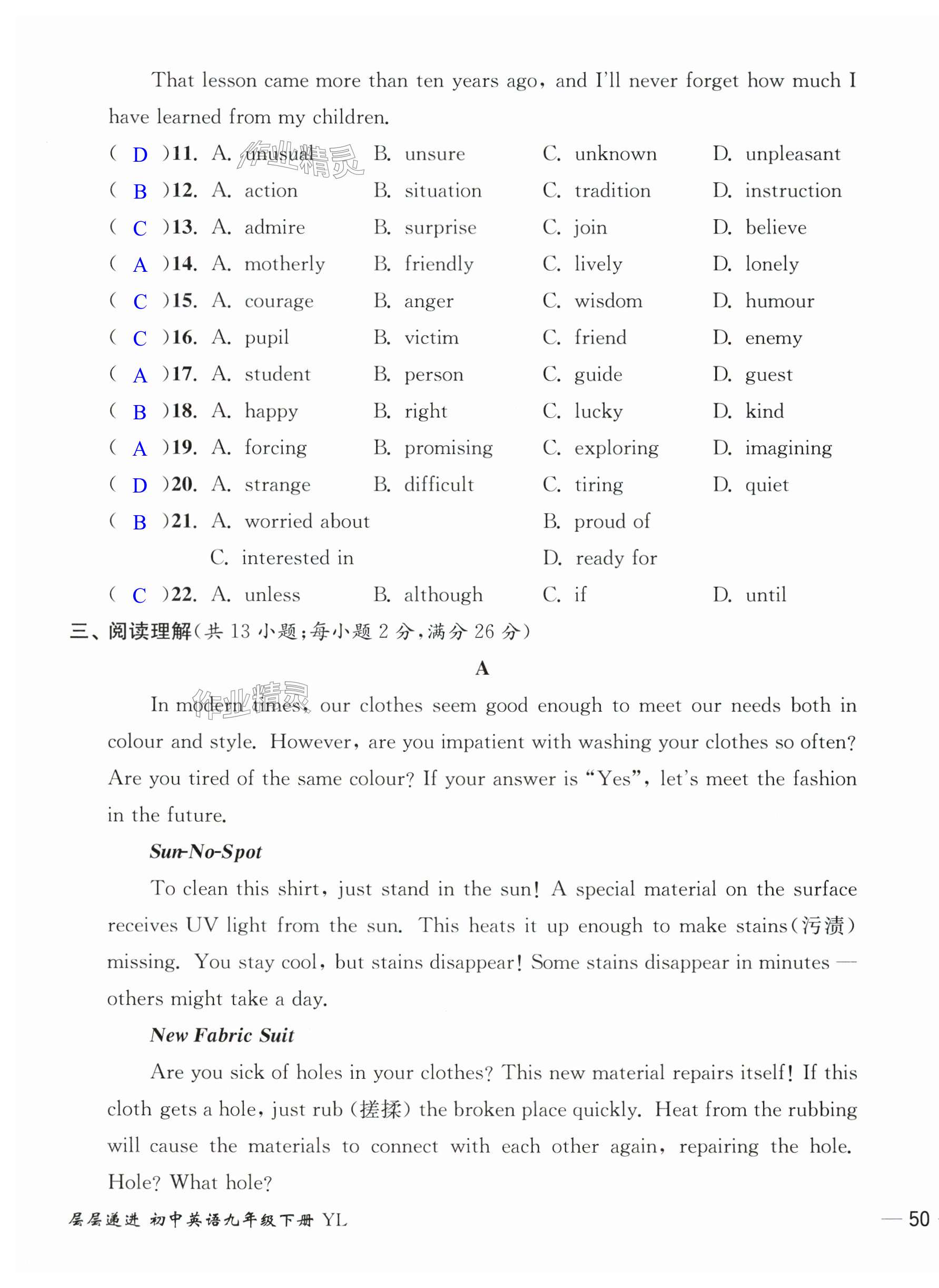 注:目前有些书本章节名称可能整理的还不是很完善,但都是按照顺序排列的,请同学们按照顺序仔细查找。练习册 2024年层层递进九年级英语下册译林版 答案主要是用来给同学们做完题方便对答案用的,请勿直接抄袭。