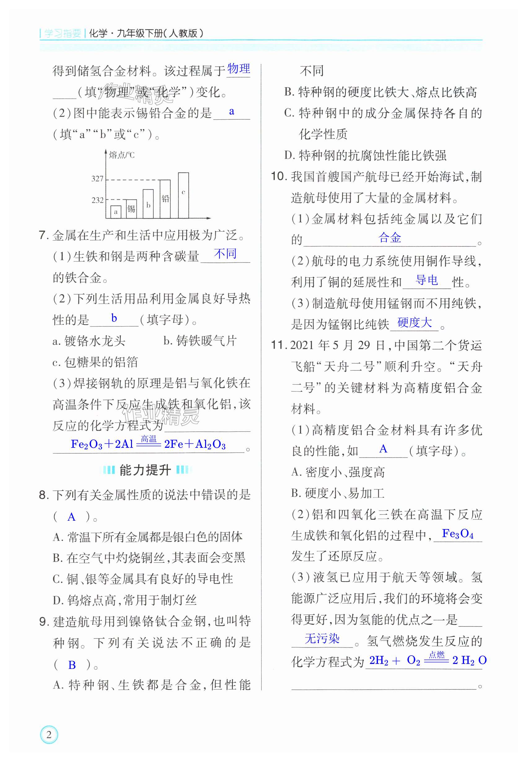 注:目前有些书本章节名称可能整理的还不是很完善,但都是按照顺序排列的,请同学们按照顺序仔细查找。练习册 2024年学习指要九年级化学下册人教版 答案主要是用来给同学们做完题方便对答案用的,请勿直接抄袭。