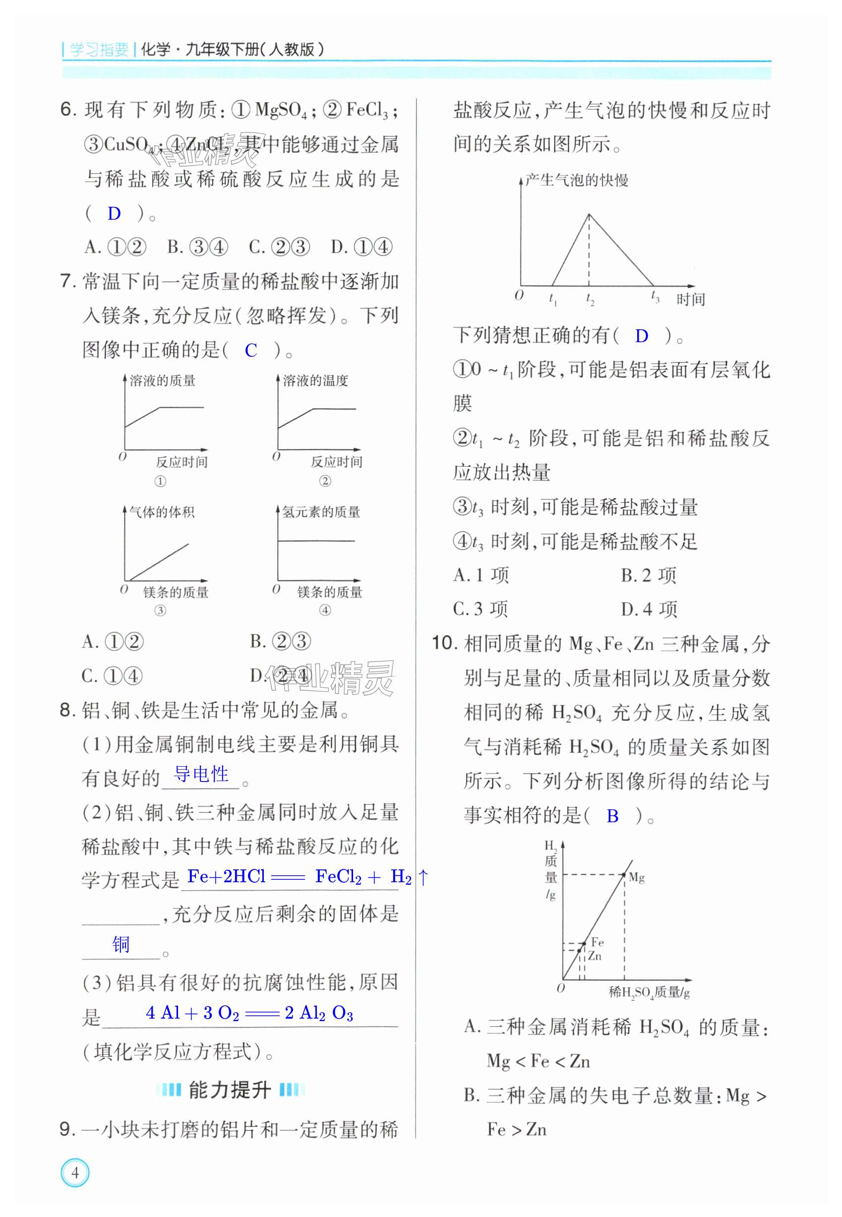 注:目前有些书本章节名称可能整理的还不是很完善,但都是按照顺序排列的,请同学们按照顺序仔细查找。练习册 2024年学习指要九年级化学下册人教版 答案主要是用来给同学们做完题方便对答案用的,请勿直接抄袭。