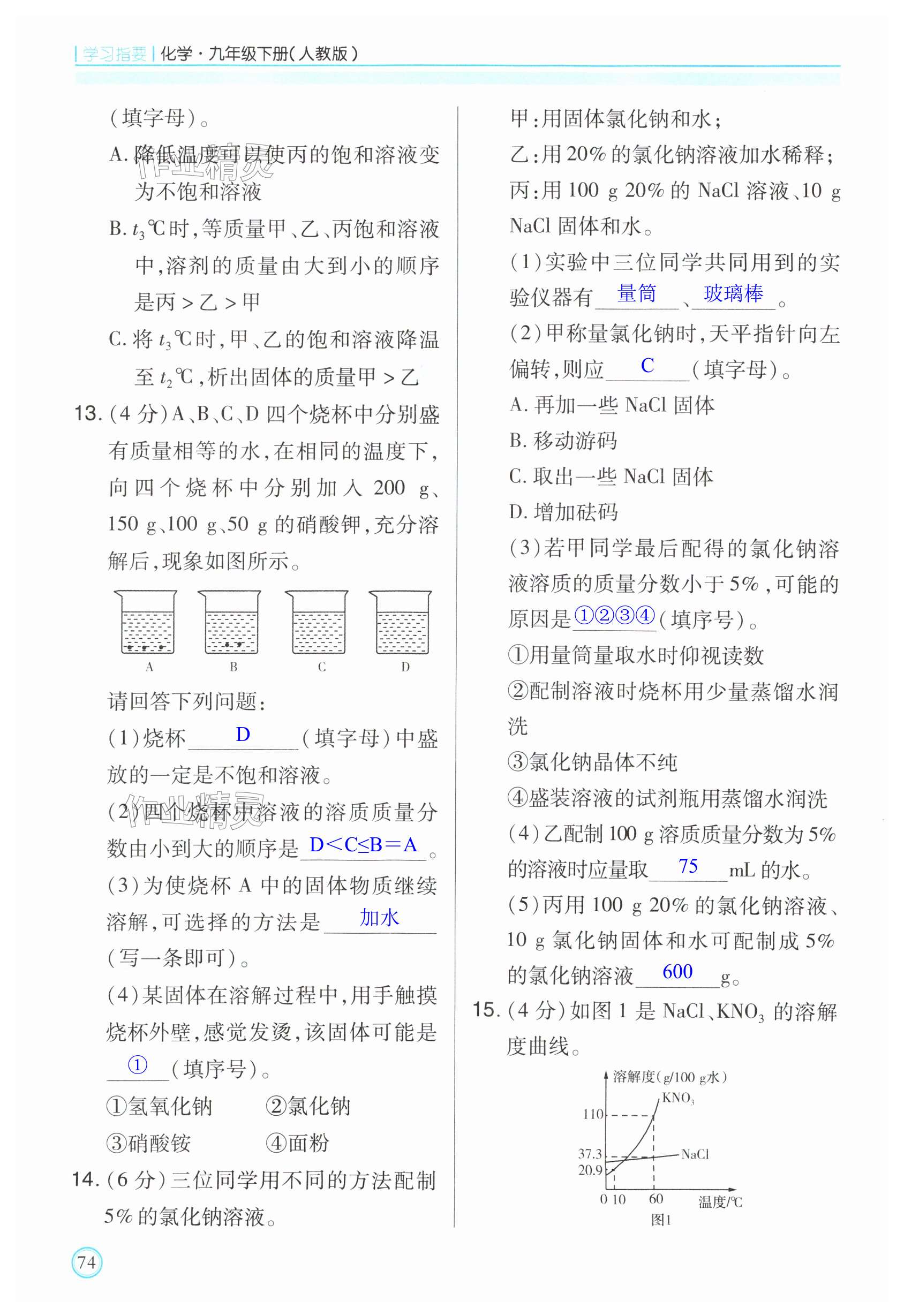 注:目前有些书本章节名称可能整理的还不是很完善,但都是按照顺序排列的,请同学们按照顺序仔细查找。练习册 2024年学习指要九年级化学下册人教版 答案主要是用来给同学们做完题方便对答案用的,请勿直接抄袭。