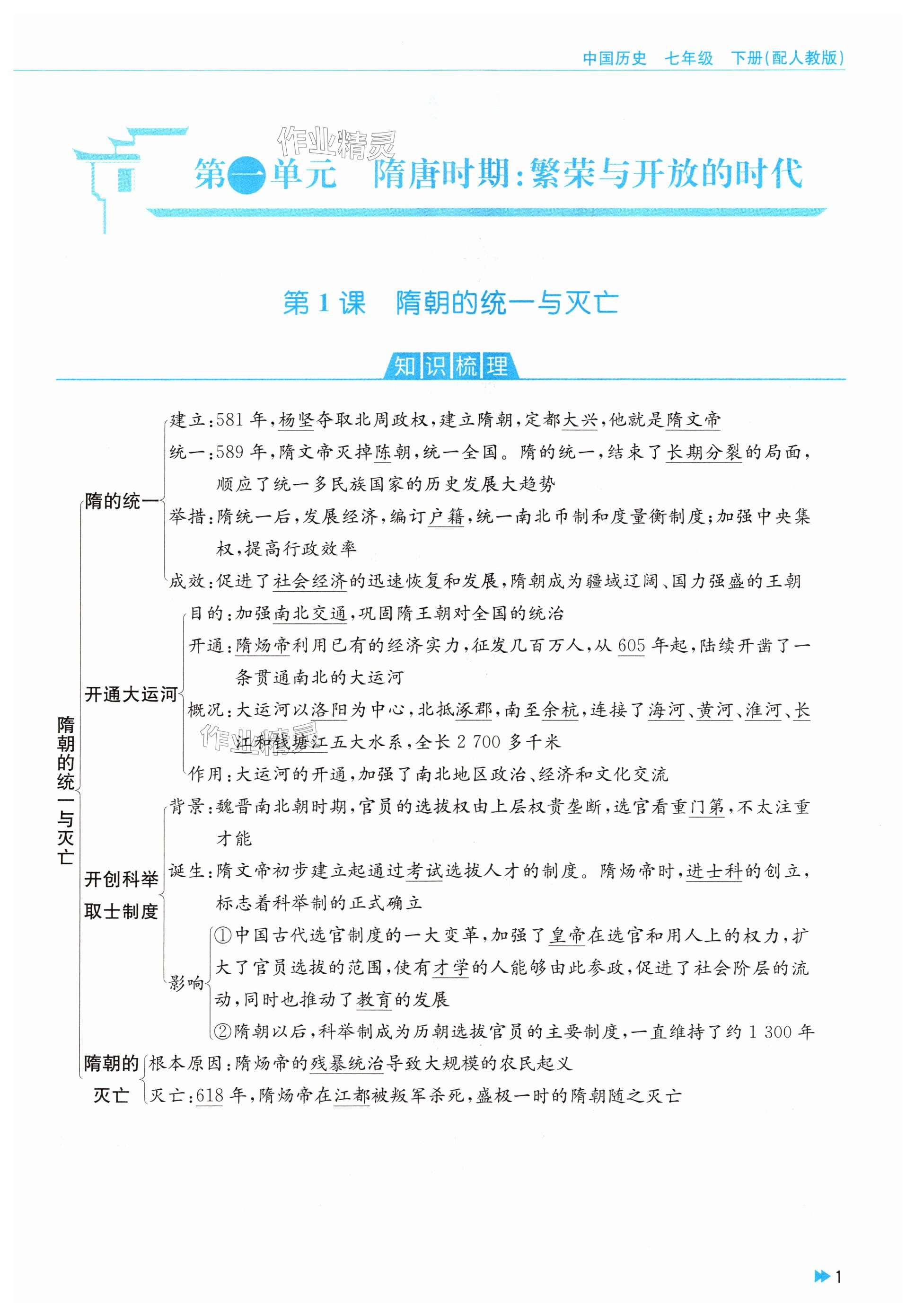 2024年新编基础训练黄山书社七年级历史下册人教版