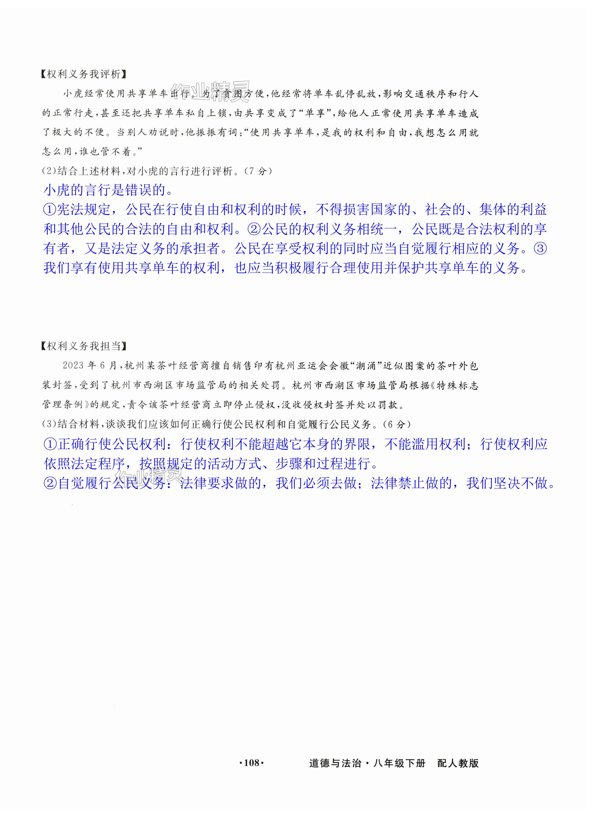 注:目前有些书本章节名称可能整理的还不是很完善,但都是按照顺序排列的,请同学们按照顺序仔细查找。练习册 2024年同步导学与优化训练八年级道德与法治下册人教版 答案主要是用来给同学们做完题方便对答案用的,请勿直接抄袭。