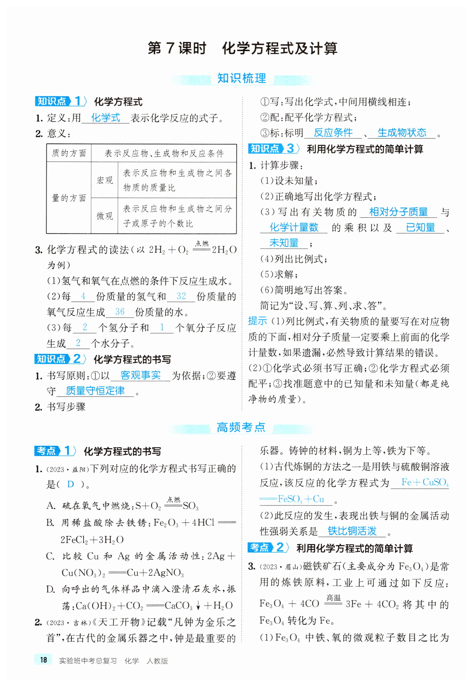 注:目前有些书本章节名称可能整理的还不是很完善,但都是按照顺序排列的,请同学们按照顺序仔细查找。练习册 2024年实验班中考总复习化学人教版江苏专版 答案主要是用来给同学们做完题方便对答案用的,请勿直接抄袭。