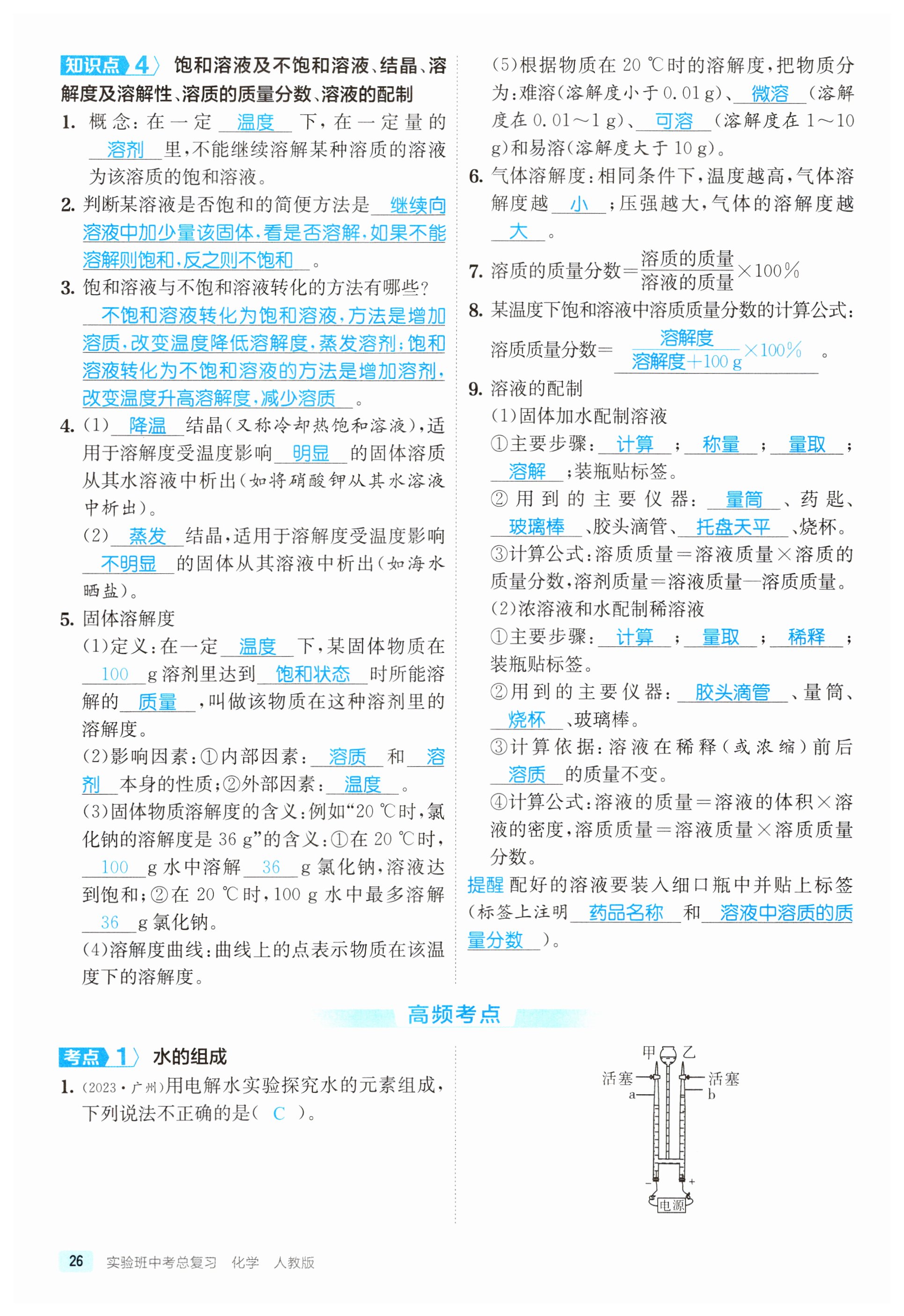 注:目前有些书本章节名称可能整理的还不是很完善,但都是按照顺序排列的,请同学们按照顺序仔细查找。练习册 2024年实验班中考总复习化学人教版江苏专版 答案主要是用来给同学们做完题方便对答案用的,请勿直接抄袭。