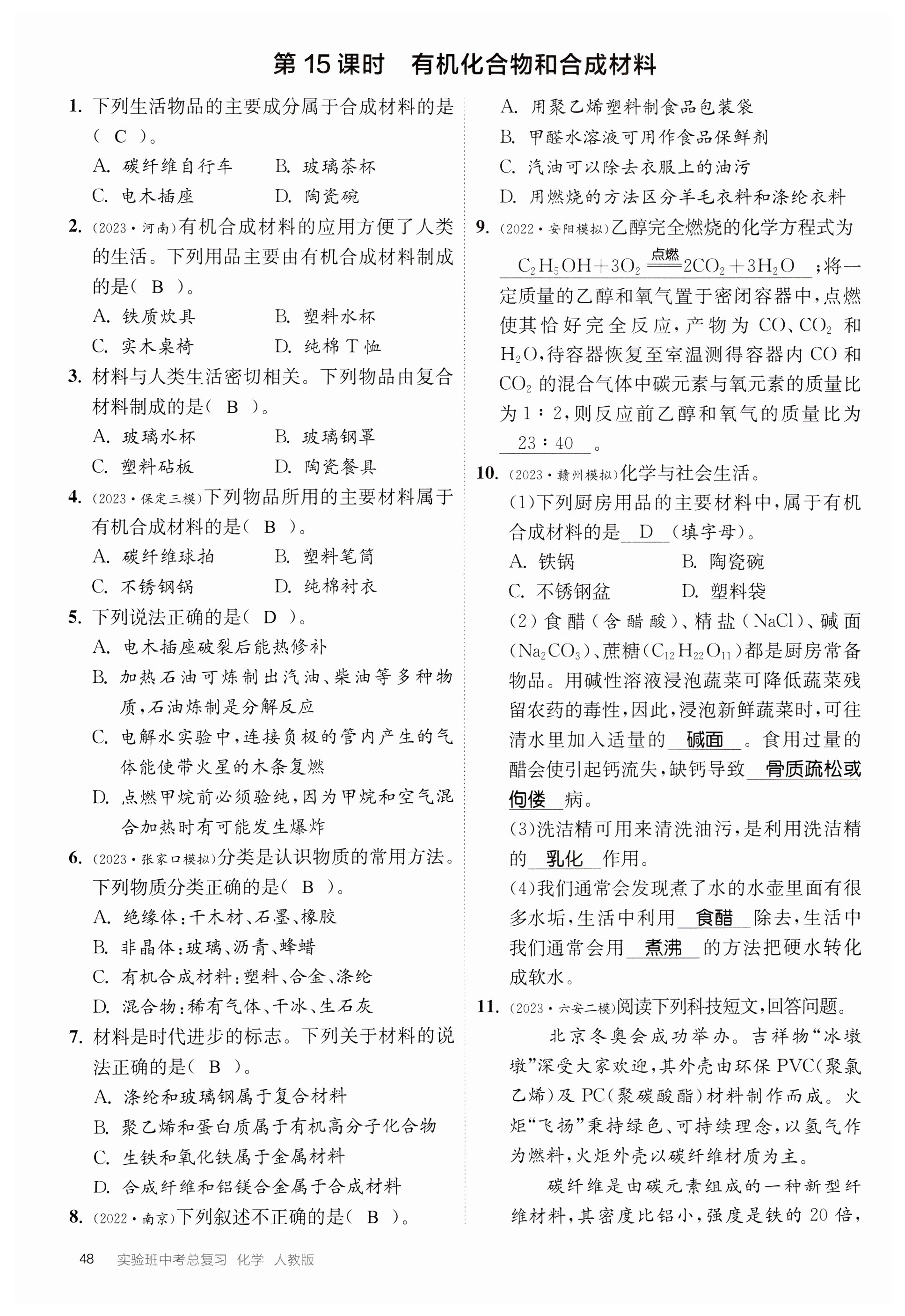 注:目前有些书本章节名称可能整理的还不是很完善,但都是按照顺序排列的,请同学们按照顺序仔细查找。练习册 2024年实验班中考总复习化学人教版江苏专版 答案主要是用来给同学们做完题方便对答案用的,请勿直接抄袭。