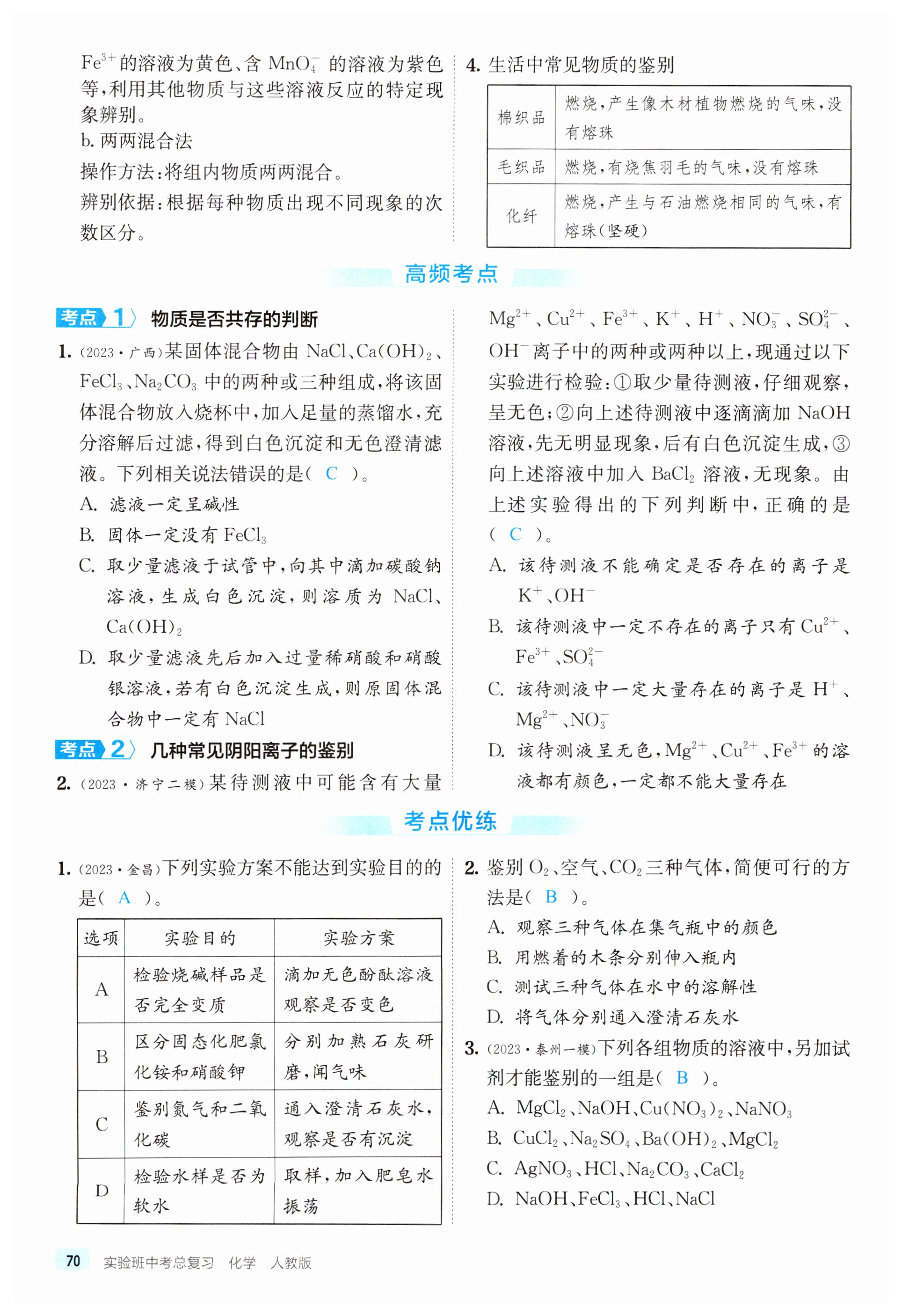 注:目前有些书本章节名称可能整理的还不是很完善,但都是按照顺序排列的,请同学们按照顺序仔细查找。练习册 2024年实验班中考总复习化学人教版江苏专版 答案主要是用来给同学们做完题方便对答案用的,请勿直接抄袭。