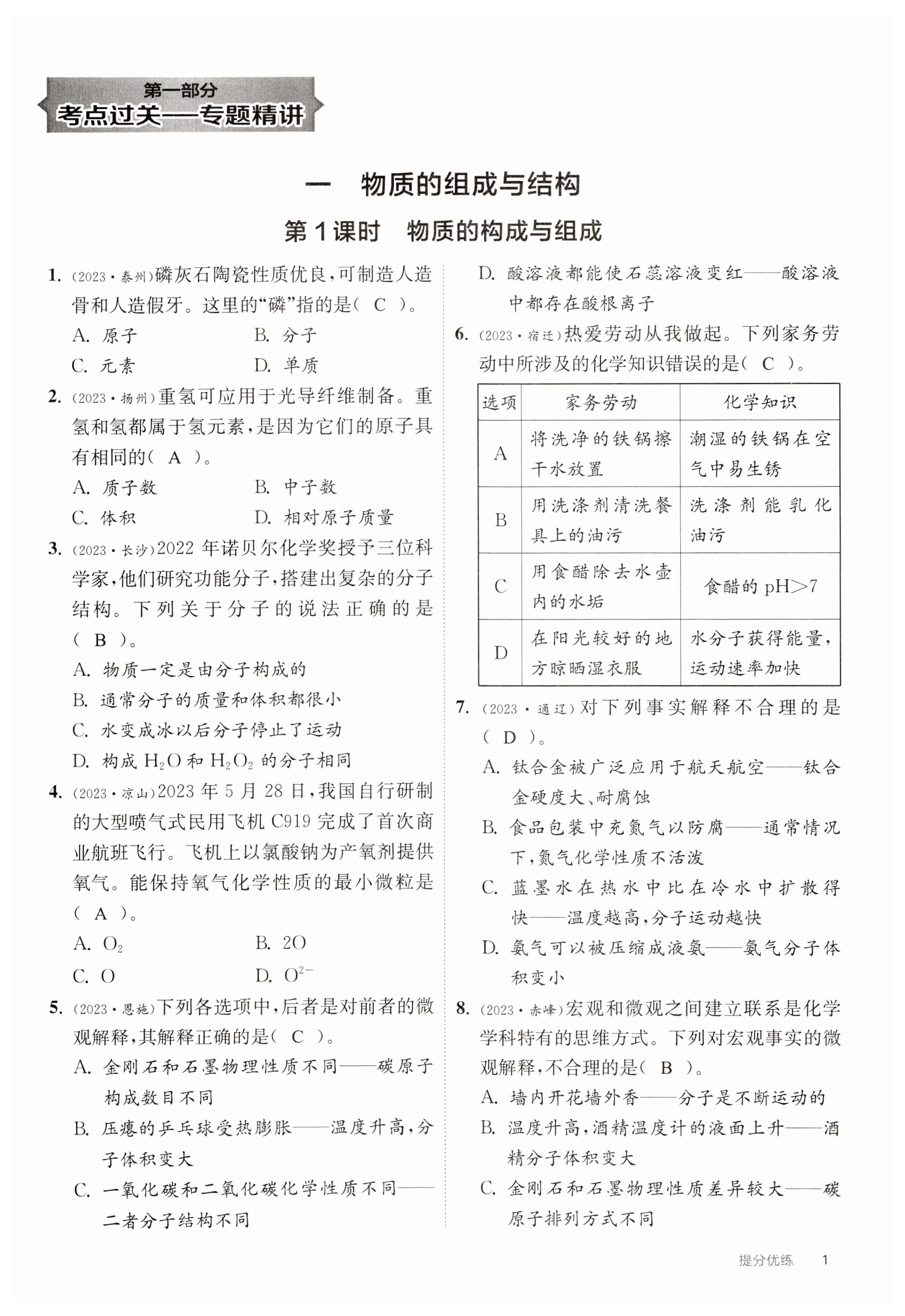 注:目前有些书本章节名称可能整理的还不是很完善,但都是按照顺序排列的,请同学们按照顺序仔细查找。练习册 2024年实验班中考总复习化学人教版江苏专版 答案主要是用来给同学们做完题方便对答案用的,请勿直接抄袭。