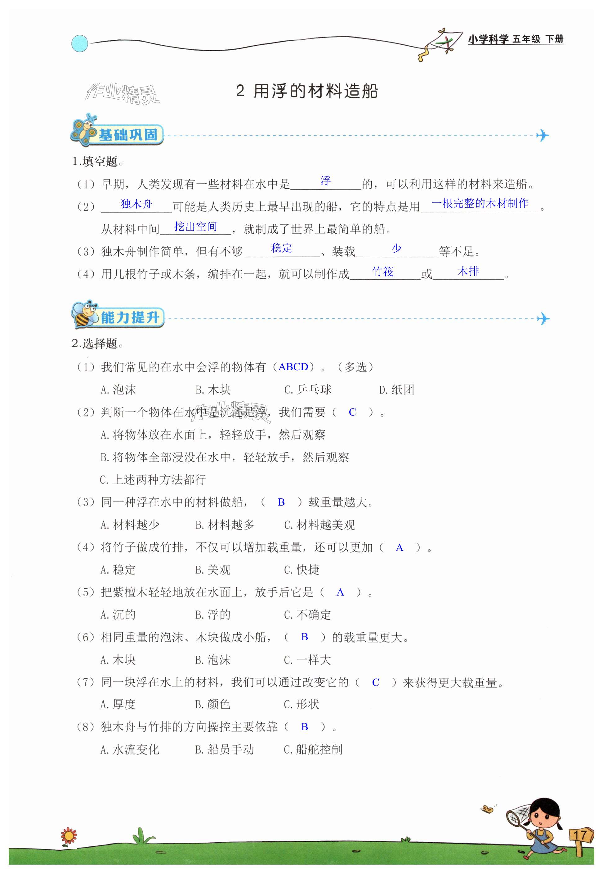 注:目前有些书本章节名称可能整理的还不是很完善,但都是按照顺序排列的,请同学们按照顺序仔细查找。练习册 2024年课时分层作业本五年级科学下册教科版 答案主要是用来给同学们做完题方便对答案用的,请勿直接抄袭。