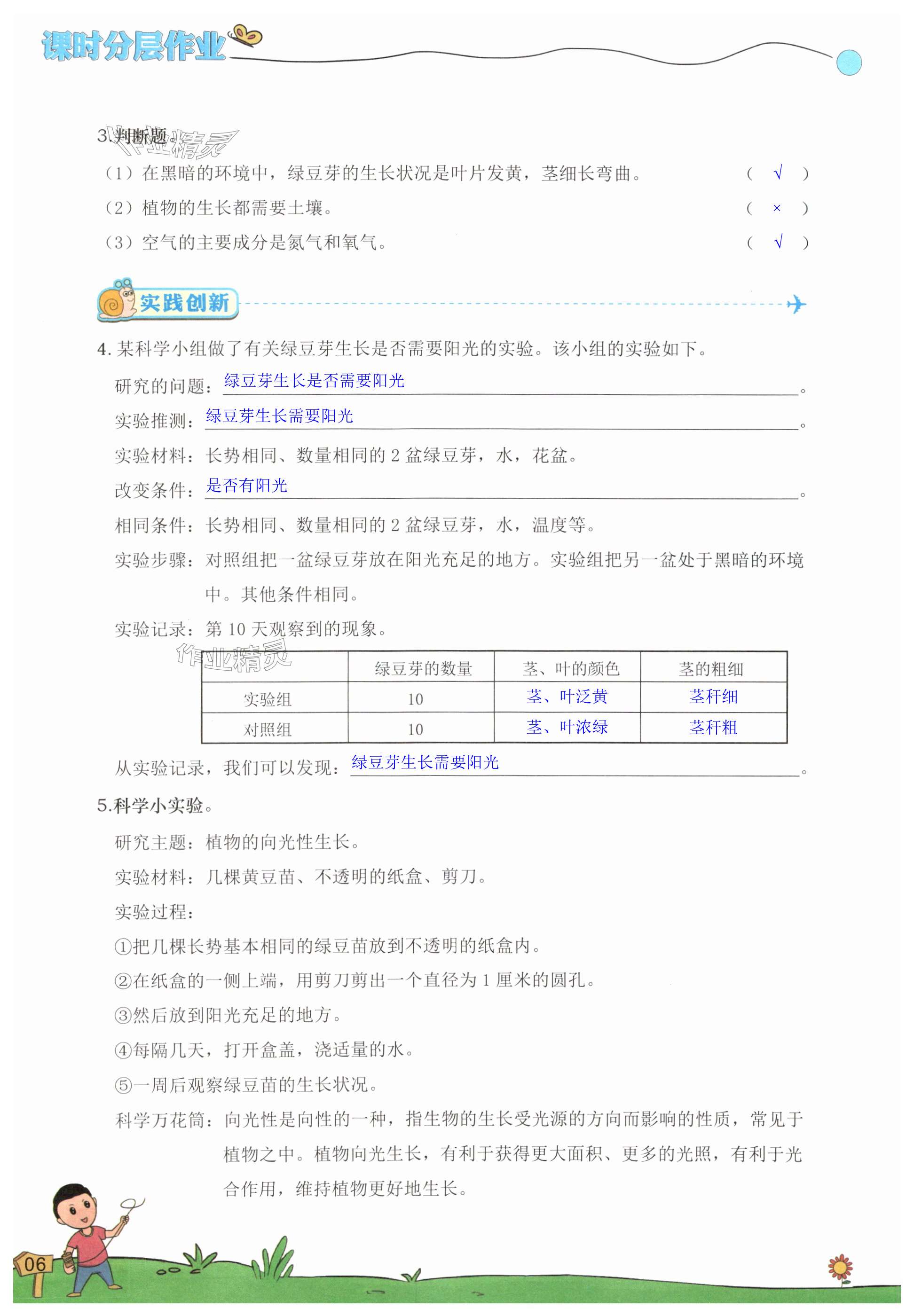 注:目前有些书本章节名称可能整理的还不是很完善,但都是按照顺序排列的,请同学们按照顺序仔细查找。练习册 2024年课时分层作业本五年级科学下册教科版 答案主要是用来给同学们做完题方便对答案用的,请勿直接抄袭。