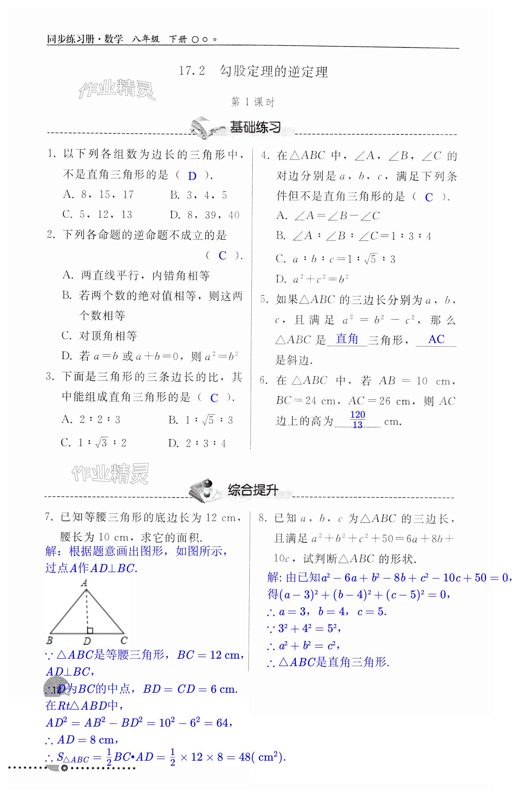注:目前有些书本章节名称可能整理的还不是很完善,但都是按照顺序排列的,请同学们按照顺序仔细查找。练习册 2024年同步练习册人民教育出版社八年级数学下册人教版新疆用 答案主要是用来给同学们做完题方便对答案用的,请勿直接抄袭。