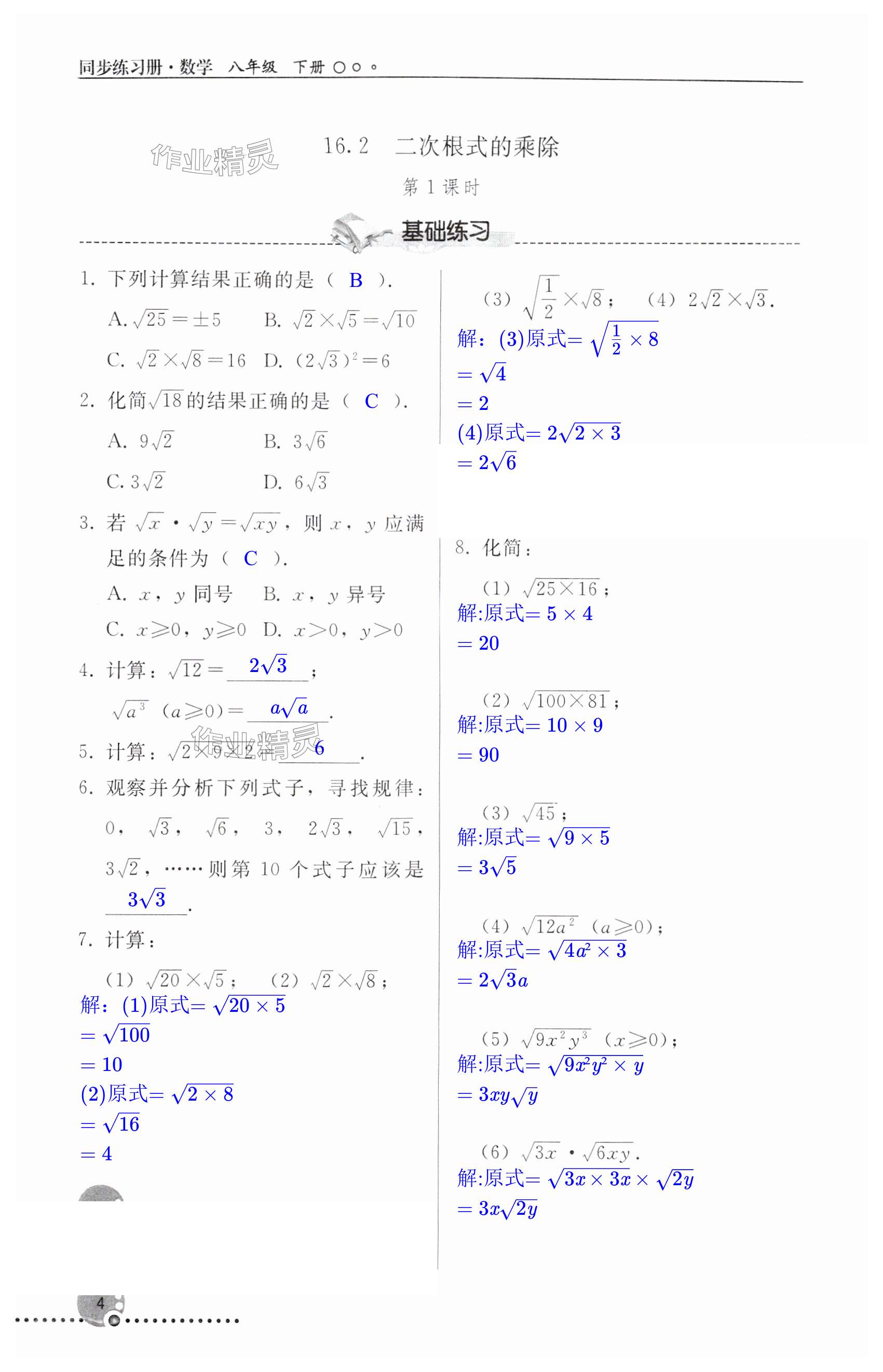 注:目前有些书本章节名称可能整理的还不是很完善,但都是按照顺序排列的,请同学们按照顺序仔细查找。练习册 2024年同步练习册人民教育出版社八年级数学下册人教版新疆用 答案主要是用来给同学们做完题方便对答案用的,请勿直接抄袭。