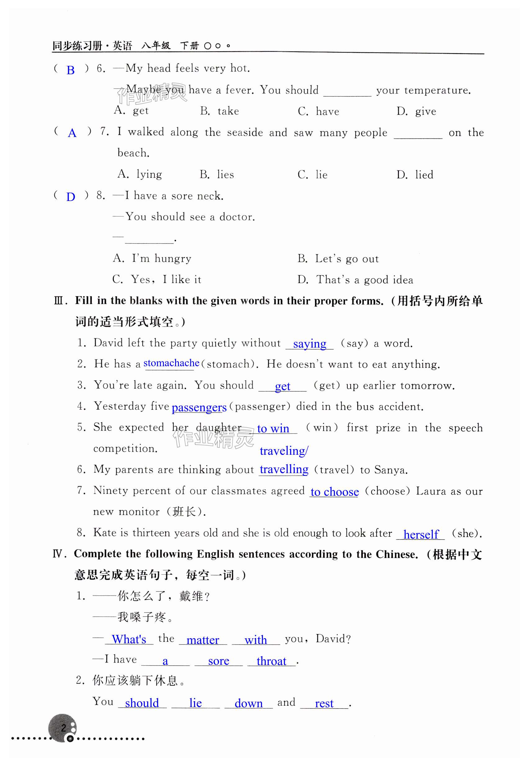 注:目前有些书本章节名称可能整理的还不是很完善,但都是按照顺序排列的,请同学们按照顺序仔细查找。练习册 2024年同步练习册人民教育出版社八年级英语下册人教版新疆用 答案主要是用来给同学们做完题方便对答案用的,请勿直接抄袭。