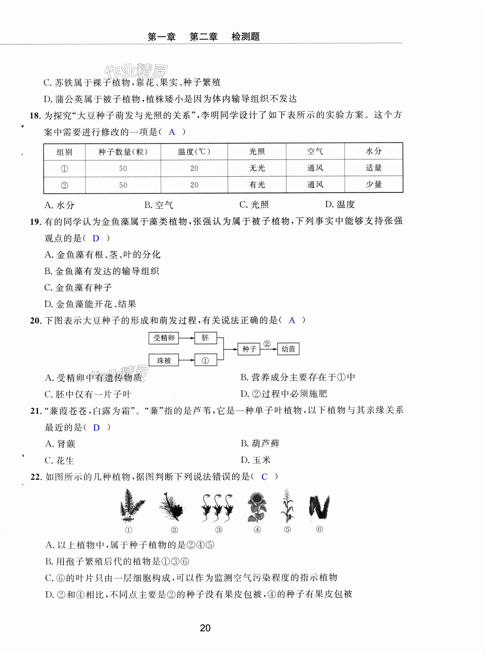 注:目前有些书本章节名称可能整理的还不是很完善,但都是按照顺序排列的,请同学们按照顺序仔细查找。练习册 2024年同步练习册配套检测卷六年级生物下册鲁科版烟台专版54制 答案主要是用来给同学们做完题方便对答案用的,请勿直接抄袭。