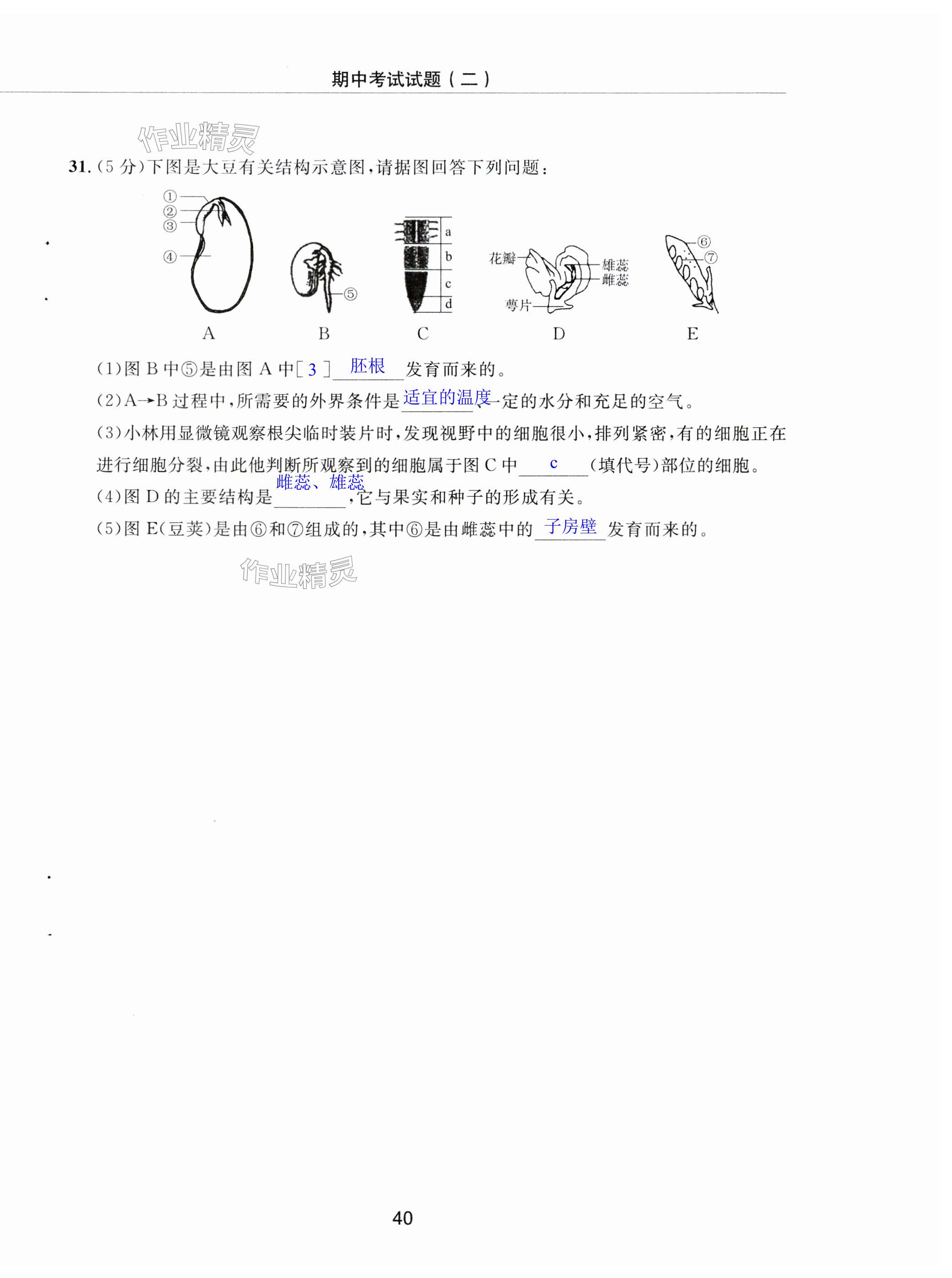 注:目前有些书本章节名称可能整理的还不是很完善,但都是按照顺序排列的,请同学们按照顺序仔细查找。练习册 2024年同步练习册配套检测卷六年级生物下册鲁科版烟台专版54制 答案主要是用来给同学们做完题方便对答案用的,请勿直接抄袭。
