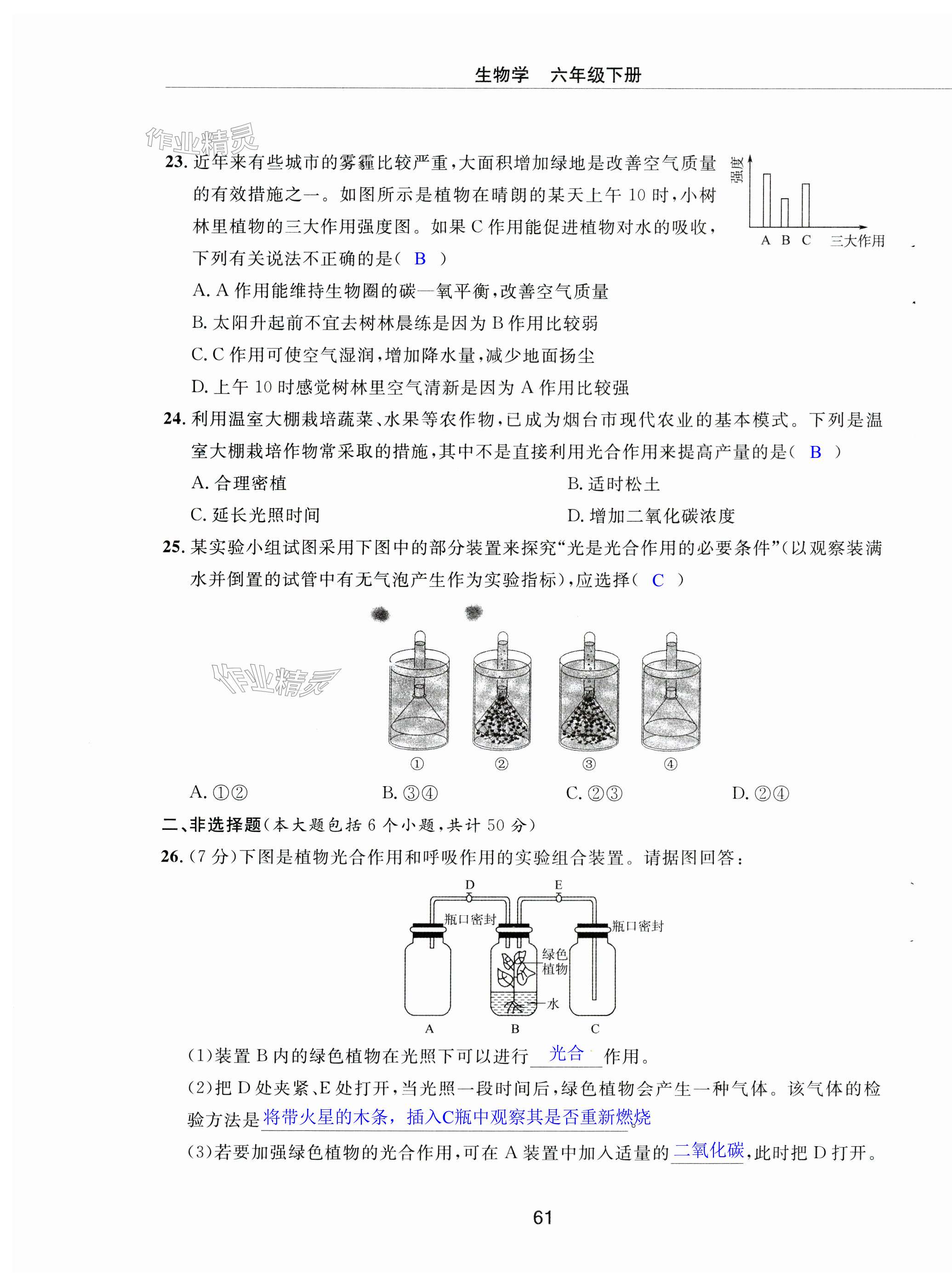 注:目前有些书本章节名称可能整理的还不是很完善,但都是按照顺序排列的,请同学们按照顺序仔细查找。练习册 2024年同步练习册配套检测卷六年级生物下册鲁科版烟台专版54制 答案主要是用来给同学们做完题方便对答案用的,请勿直接抄袭。