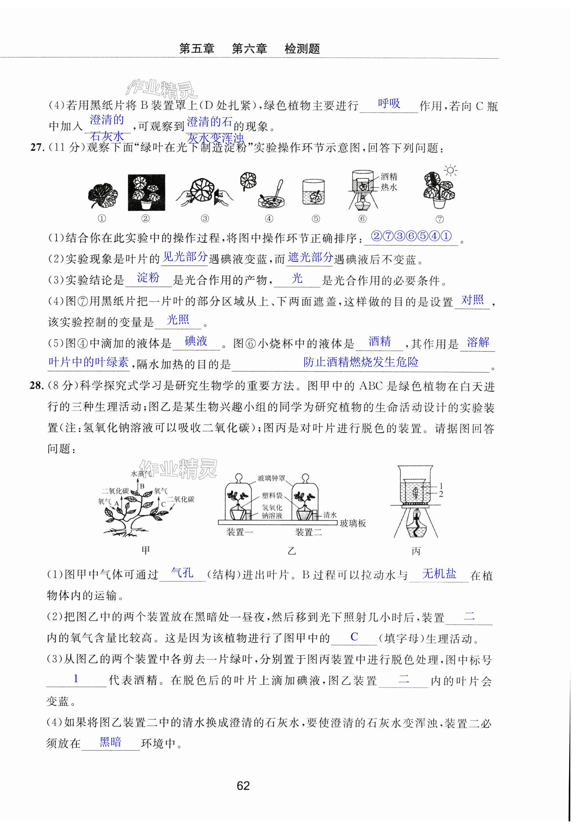 注:目前有些书本章节名称可能整理的还不是很完善,但都是按照顺序排列的,请同学们按照顺序仔细查找。练习册 2024年同步练习册配套检测卷六年级生物下册鲁科版烟台专版54制 答案主要是用来给同学们做完题方便对答案用的,请勿直接抄袭。