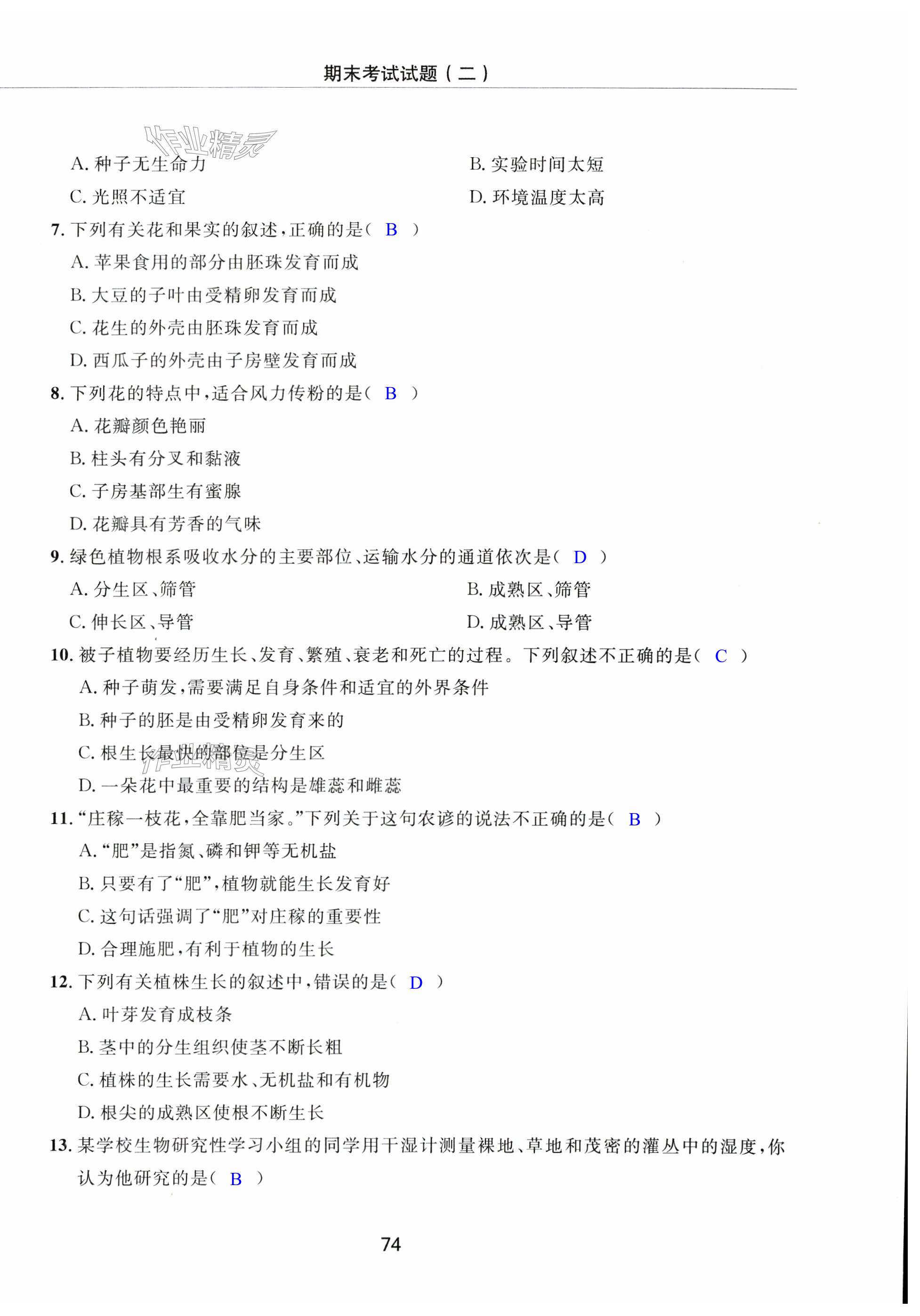 注:目前有些书本章节名称可能整理的还不是很完善,但都是按照顺序排列的,请同学们按照顺序仔细查找。练习册 2024年同步练习册配套检测卷六年级生物下册鲁科版烟台专版54制 答案主要是用来给同学们做完题方便对答案用的,请勿直接抄袭。