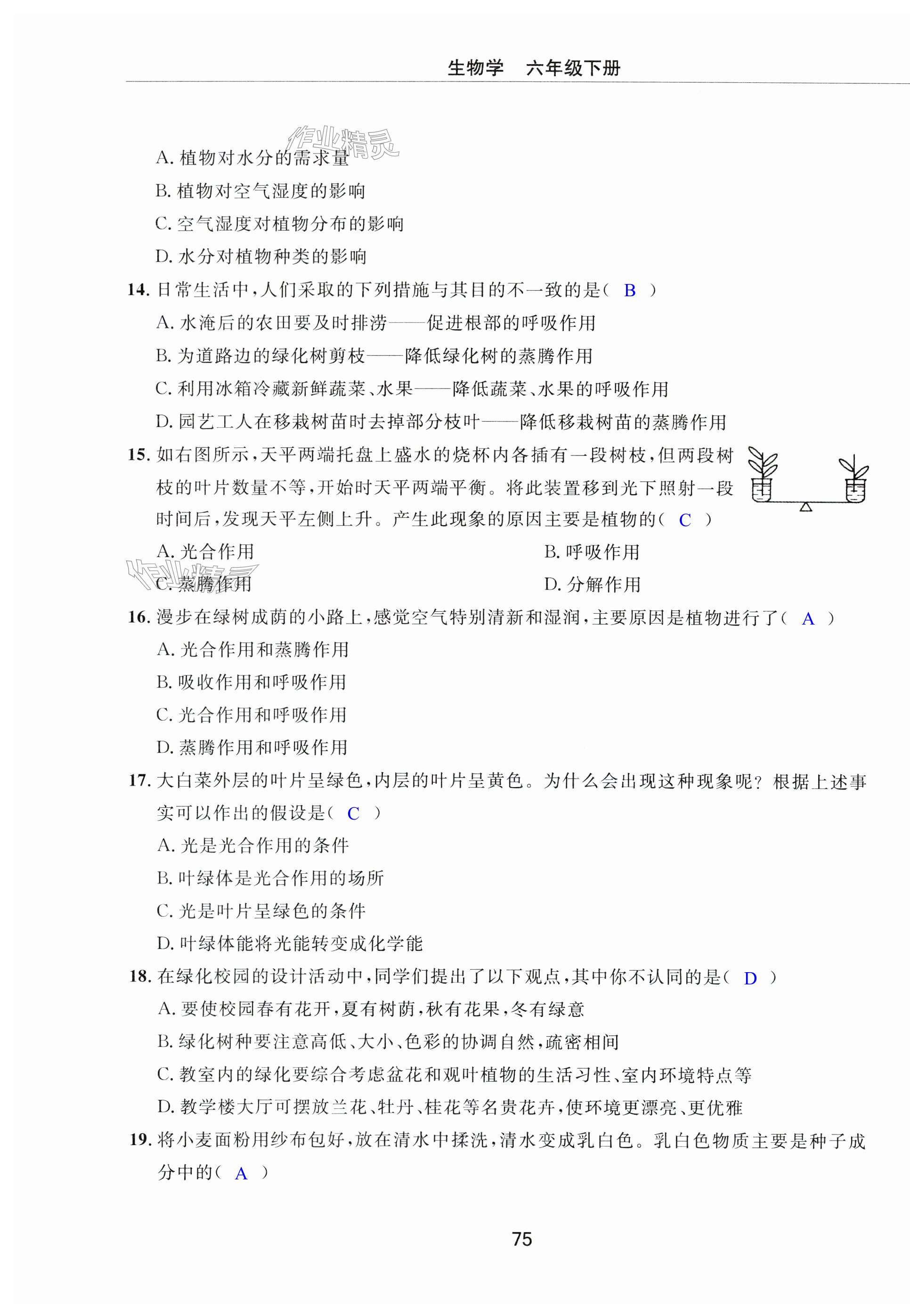 注:目前有些书本章节名称可能整理的还不是很完善,但都是按照顺序排列的,请同学们按照顺序仔细查找。练习册 2024年同步练习册配套检测卷六年级生物下册鲁科版烟台专版54制 答案主要是用来给同学们做完题方便对答案用的,请勿直接抄袭。