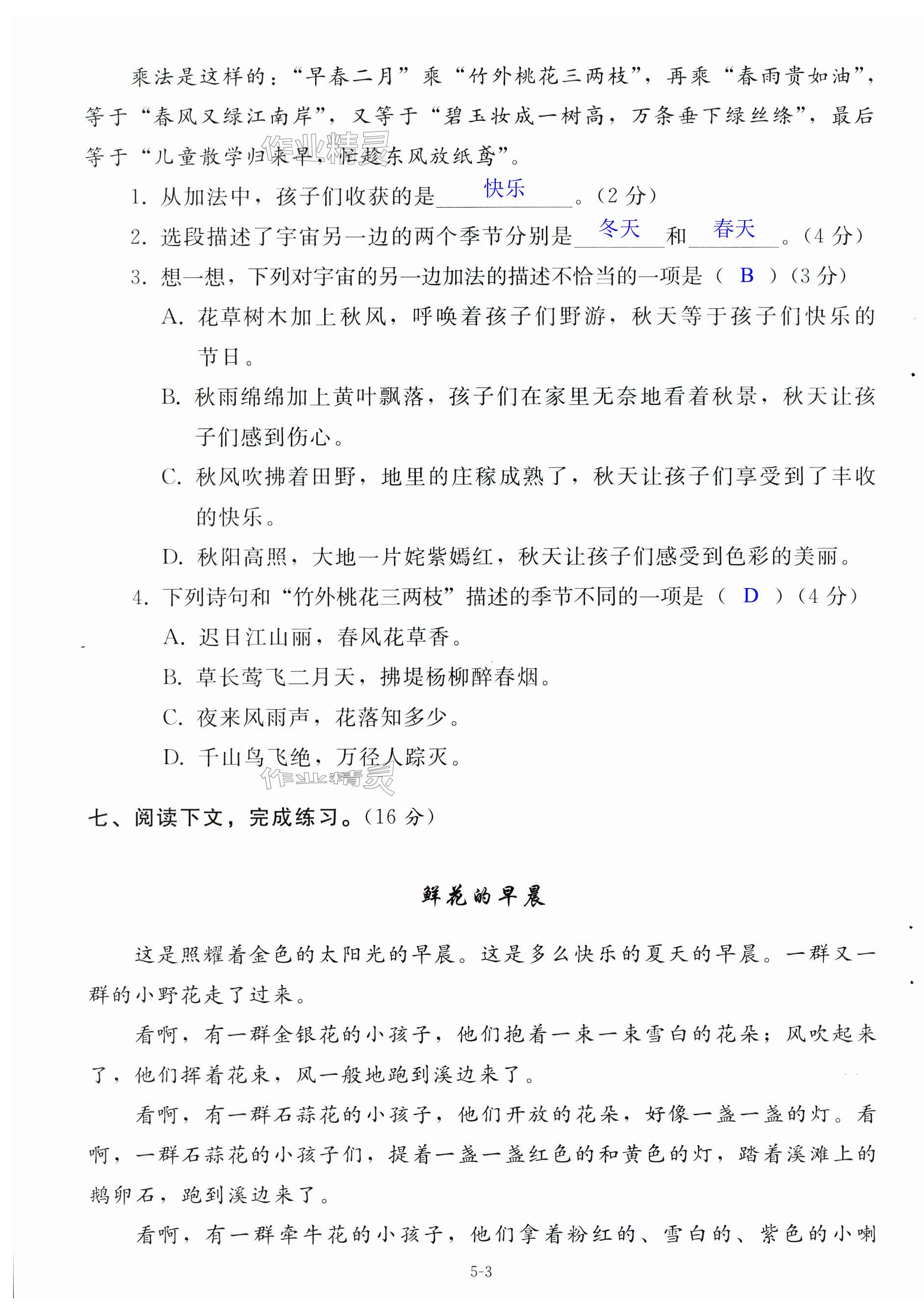 注:目前有些书本章节名称可能整理的还不是很完善,但都是按照顺序排列的,请同学们按照顺序仔细查找。练习册 2024年同步练习册人民教育出版社三年级语文下册人教版山东专版 答案主要是用来给同学们做完题方便对答案用的,请勿直接抄袭。