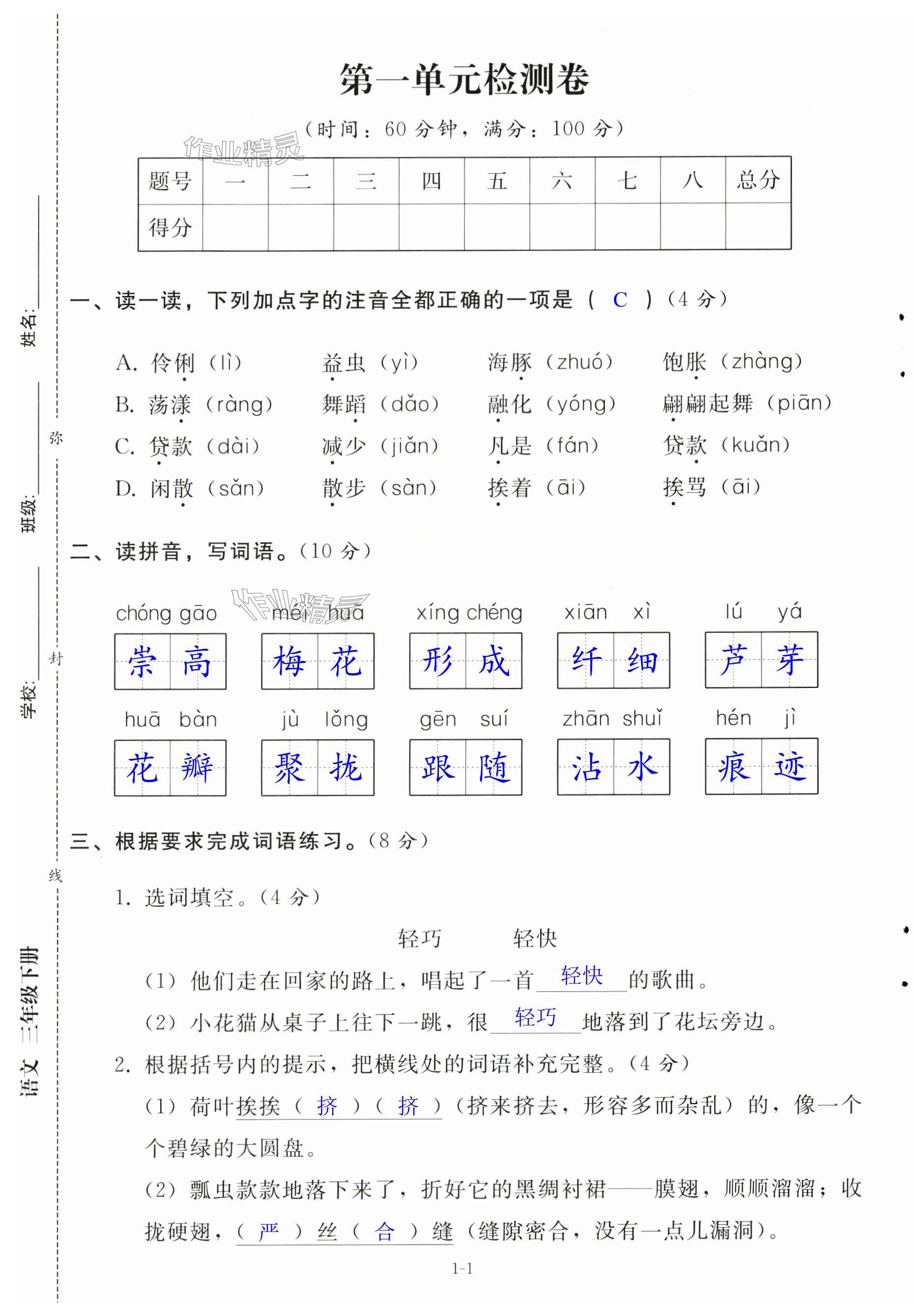 注:目前有些书本章节名称可能整理的还不是很完善,但都是按照顺序排列的,请同学们按照顺序仔细查找。练习册 2024年同步练习册人民教育出版社三年级语文下册人教版山东专版 答案主要是用来给同学们做完题方便对答案用的,请勿直接抄袭。