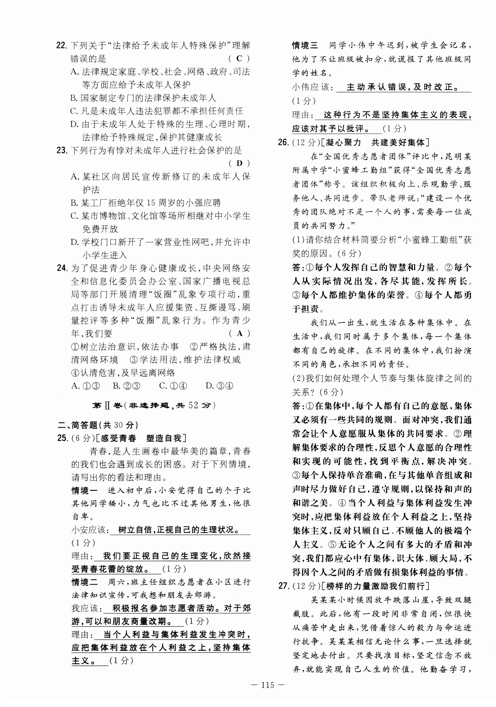 注:目前有些书本章节名称可能整理的还不是很完善,但都是按照顺序排列的,请同学们按照顺序仔细查找。练习册 2024年初中同步学习导与练导学探究案七年级道德与法治下册人教版云南专版 答案主要是用来给同学们做完题方便对答案用的,请勿直接抄袭。