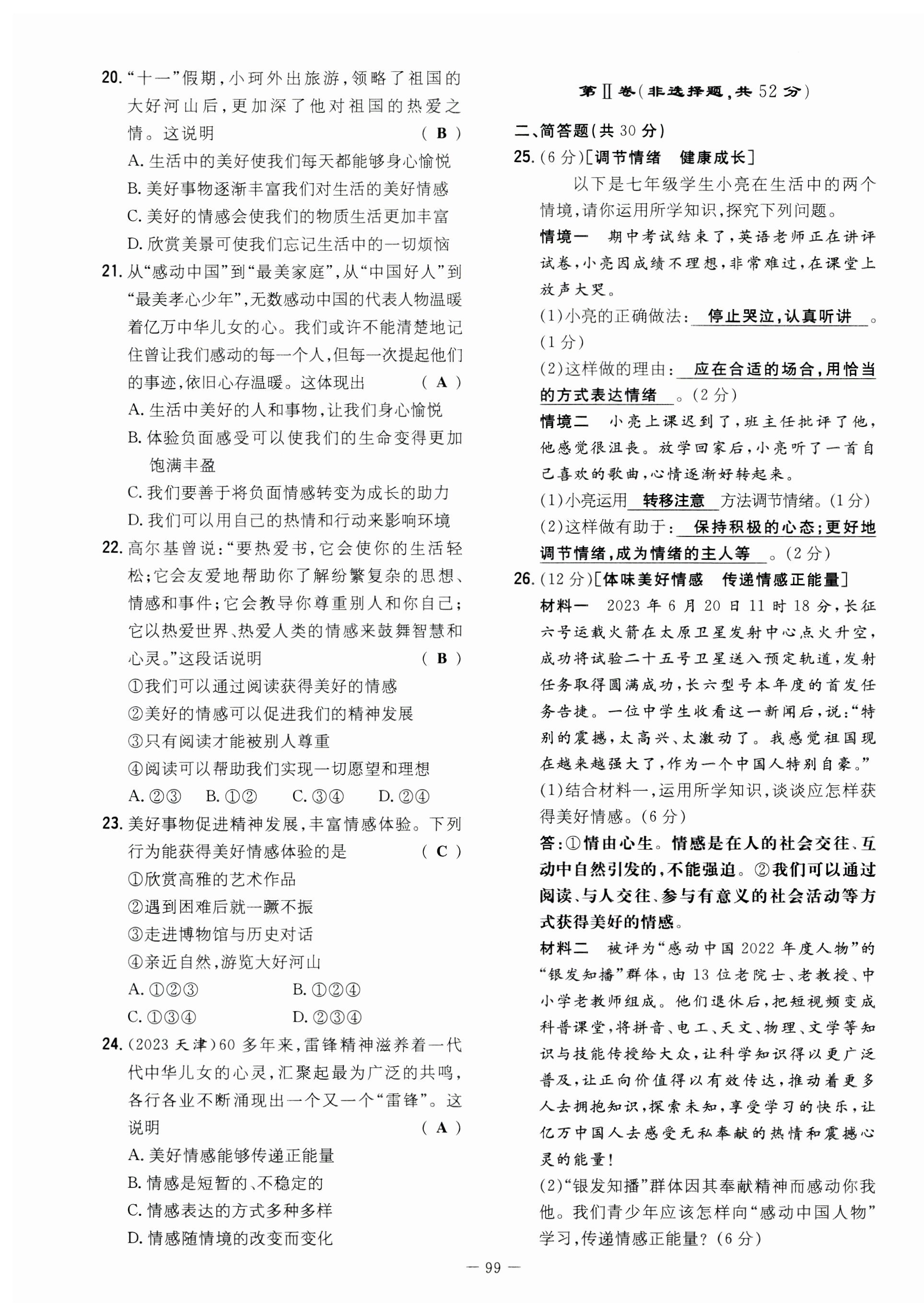 注:目前有些书本章节名称可能整理的还不是很完善,但都是按照顺序排列的,请同学们按照顺序仔细查找。练习册 2024年初中同步学习导与练导学探究案七年级道德与法治下册人教版云南专版 答案主要是用来给同学们做完题方便对答案用的,请勿直接抄袭。