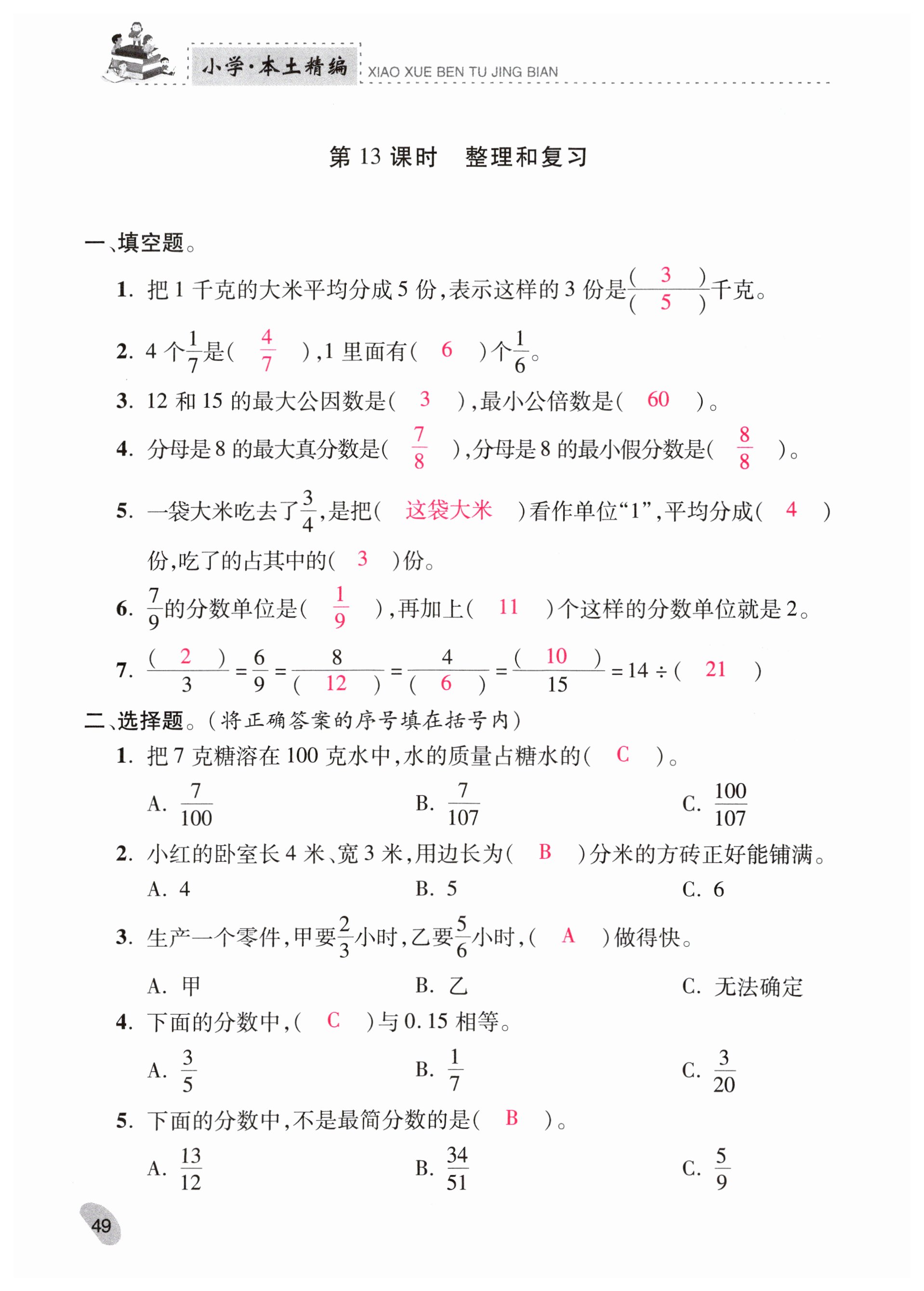 注:目前有些书本章节名称可能整理的还不是很完善,但都是按照顺序排列的,请同学们按照顺序仔细查找。练习册 2024年本土精编五年级数学下册人教版 答案主要是用来给同学们做完题方便对答案用的,请勿直接抄袭。
