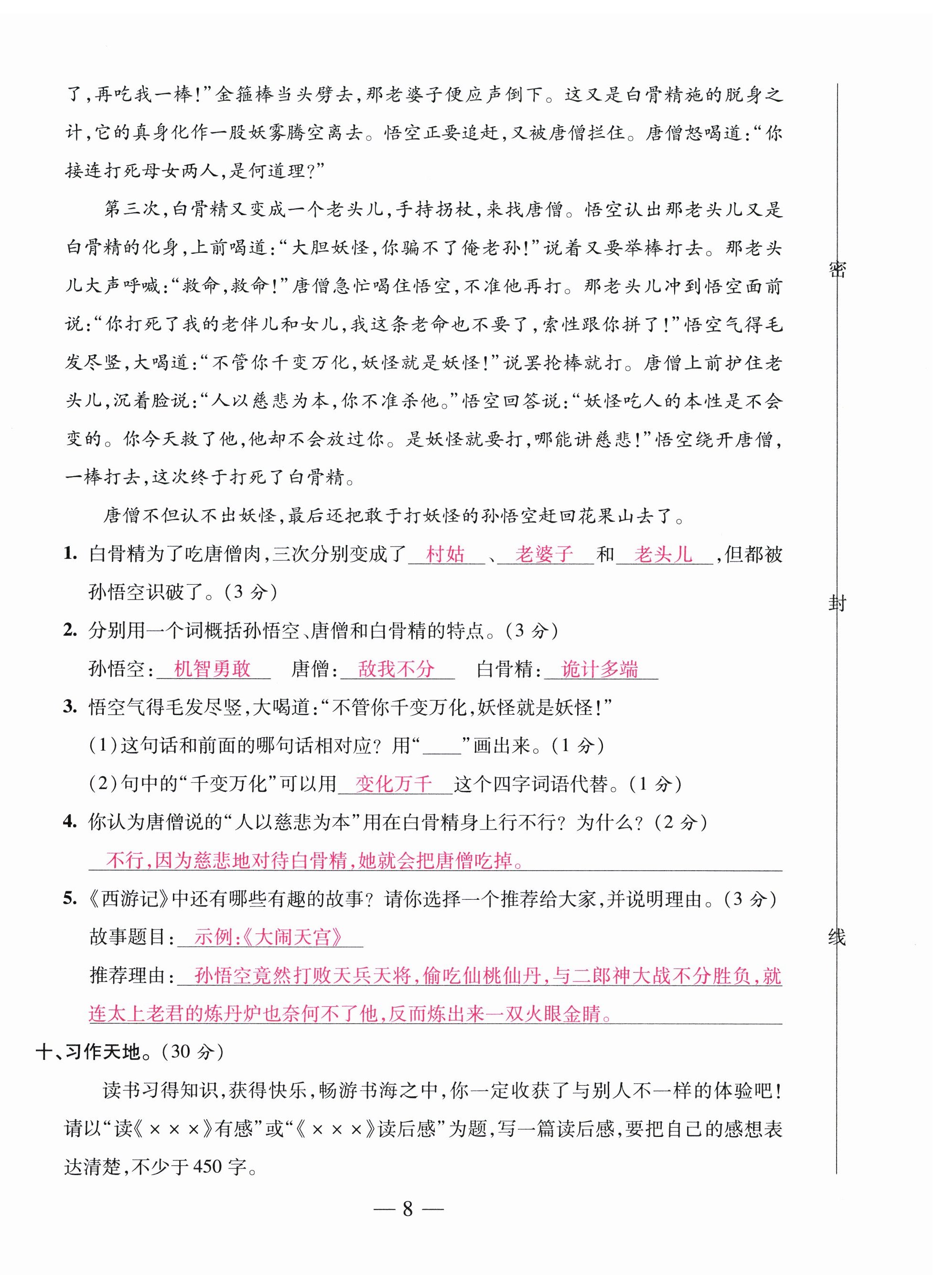 注:目前有些书本章节名称可能整理的还不是很完善,但都是按照顺序排列的,请同学们按照顺序仔细查找。练习册 2024年本土卷五年级语文下册人教版 答案主要是用来给同学们做完题方便对答案用的,请勿直接抄袭。