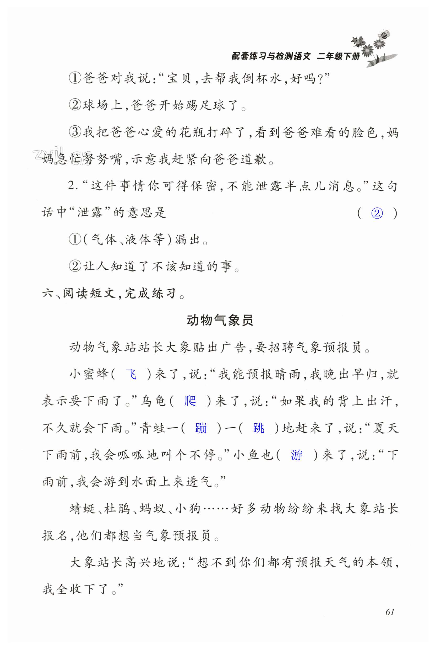注:目前有些书本章节名称可能整理的还不是很完善,但都是按照顺序排列的,请同学们按照顺序仔细查找。练习册 2024年配套练习与检测二年级语文下册人教版 答案主要是用来给同学们做完题方便对答案用的,请勿直接抄袭。