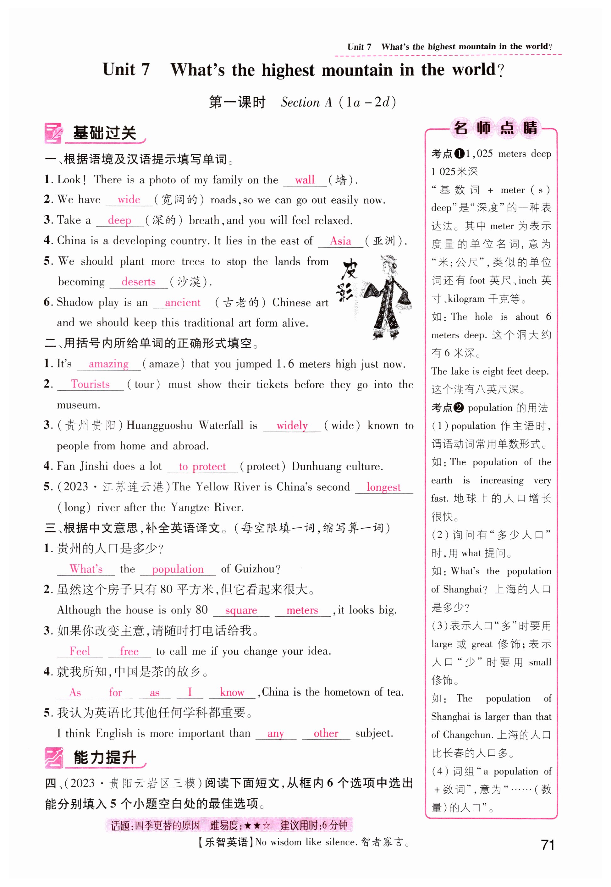 注:目前有些书本章节名称可能整理的还不是很完善,但都是按照顺序排列的,请同学们按照顺序仔细查找。练习册 2024年名师测控八年级英语下册人教版贵州专版 答案主要是用来给同学们做完题方便对答案用的,请勿直接抄袭。