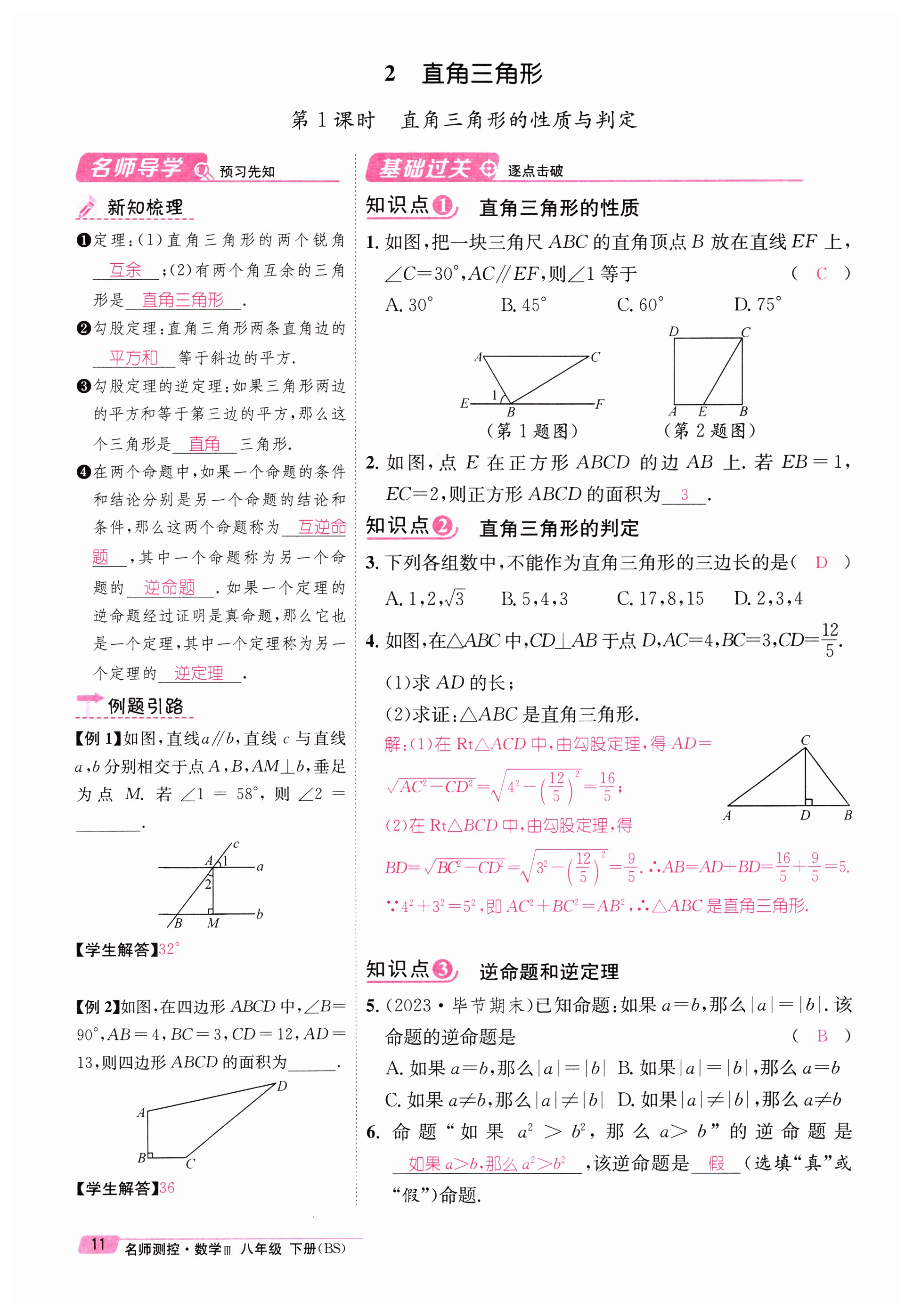 注:目前有些书本章节名称可能整理的还不是很完善,但都是按照顺序排列的,请同学们按照顺序仔细查找。练习册 2024年名师测控八年级数学下册北师大版贵州专版 答案主要是用来给同学们做完题方便对答案用的,请勿直接抄袭。
