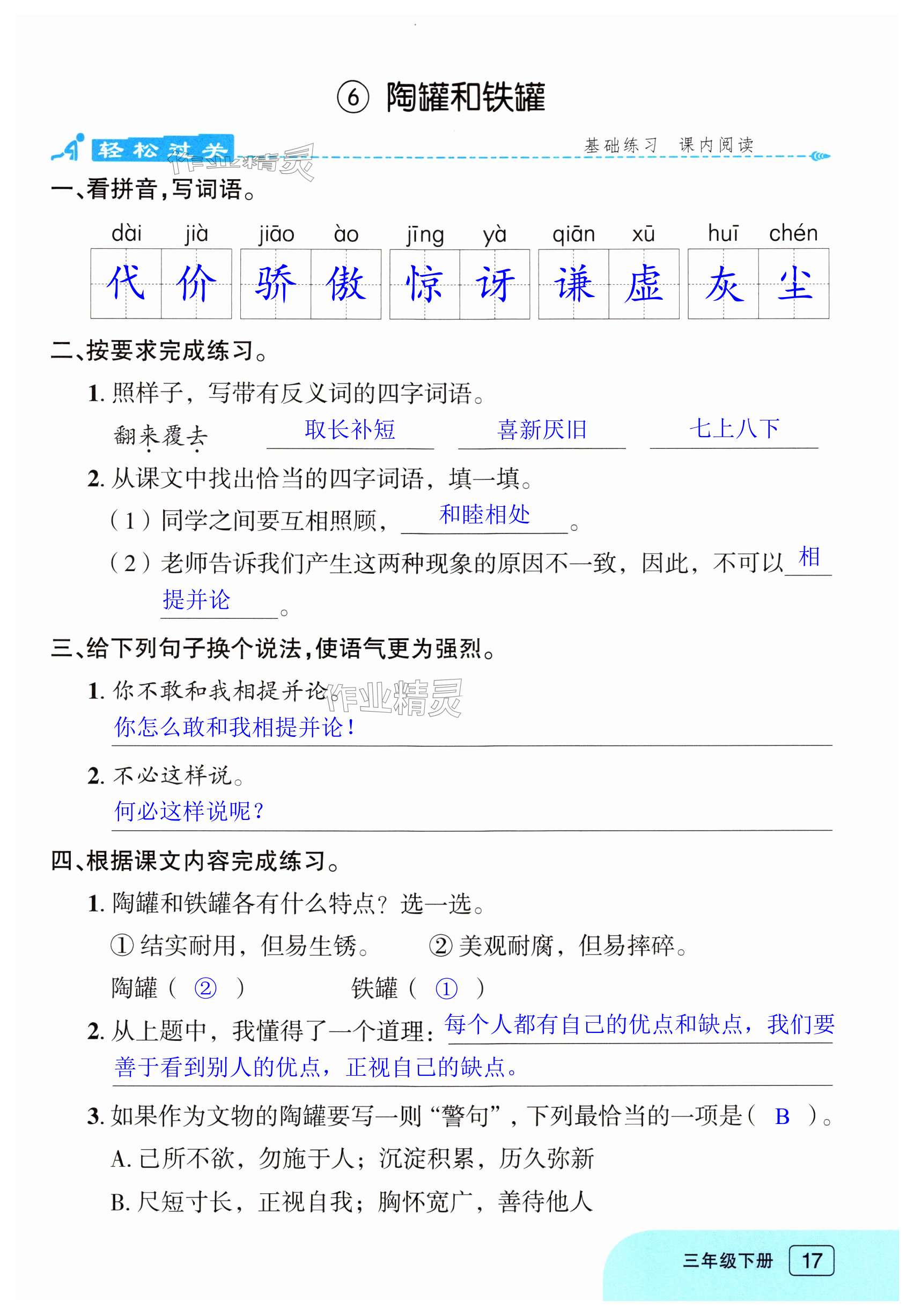 注:目前有些书本章节名称可能整理的还不是很完善,但都是按照顺序排列的,请同学们按照顺序仔细查找。练习册 2024年名师面对面先学后练三年级语文下册人教版评议教辅专版 答案主要是用来给同学们做完题方便对答案用的,请勿直接抄袭。