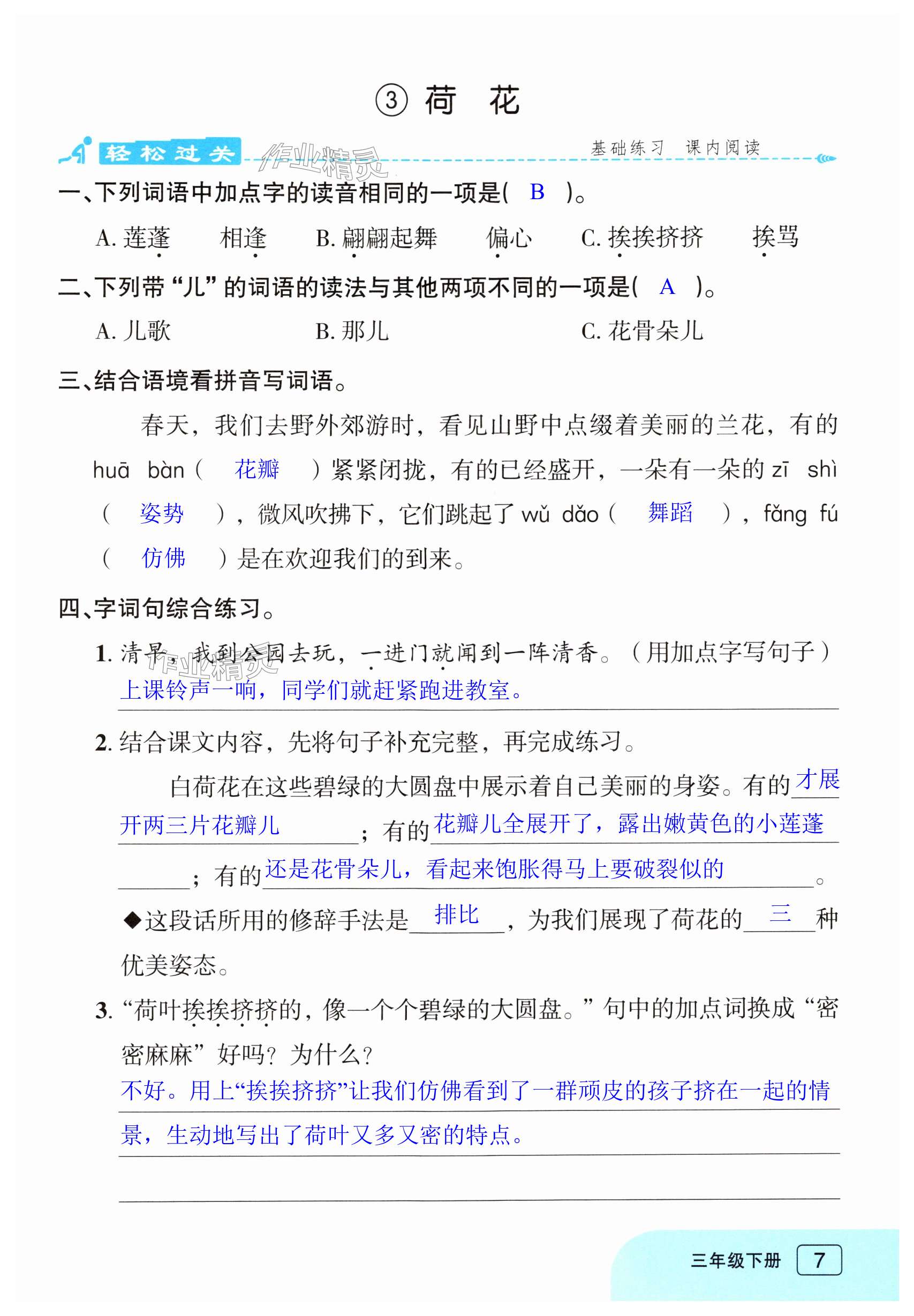 注:目前有些书本章节名称可能整理的还不是很完善,但都是按照顺序排列的,请同学们按照顺序仔细查找。练习册 2024年名师面对面先学后练三年级语文下册人教版评议教辅专版 答案主要是用来给同学们做完题方便对答案用的,请勿直接抄袭。