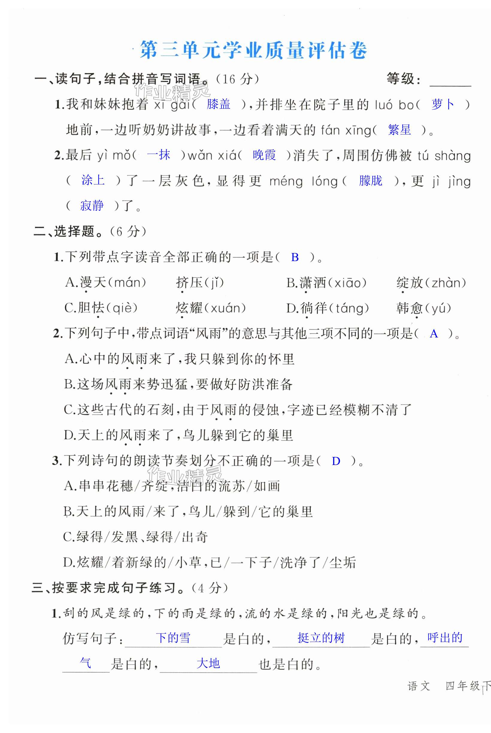 注:目前有些书本章节名称可能整理的还不是很完善,但都是按照顺序排列的,请同学们按照顺序仔细查找。练习册 2024年名师面对面先学后练四年级语文下册人教版评议教辅专版 答案主要是用来给同学们做完题方便对答案用的,请勿直接抄袭。