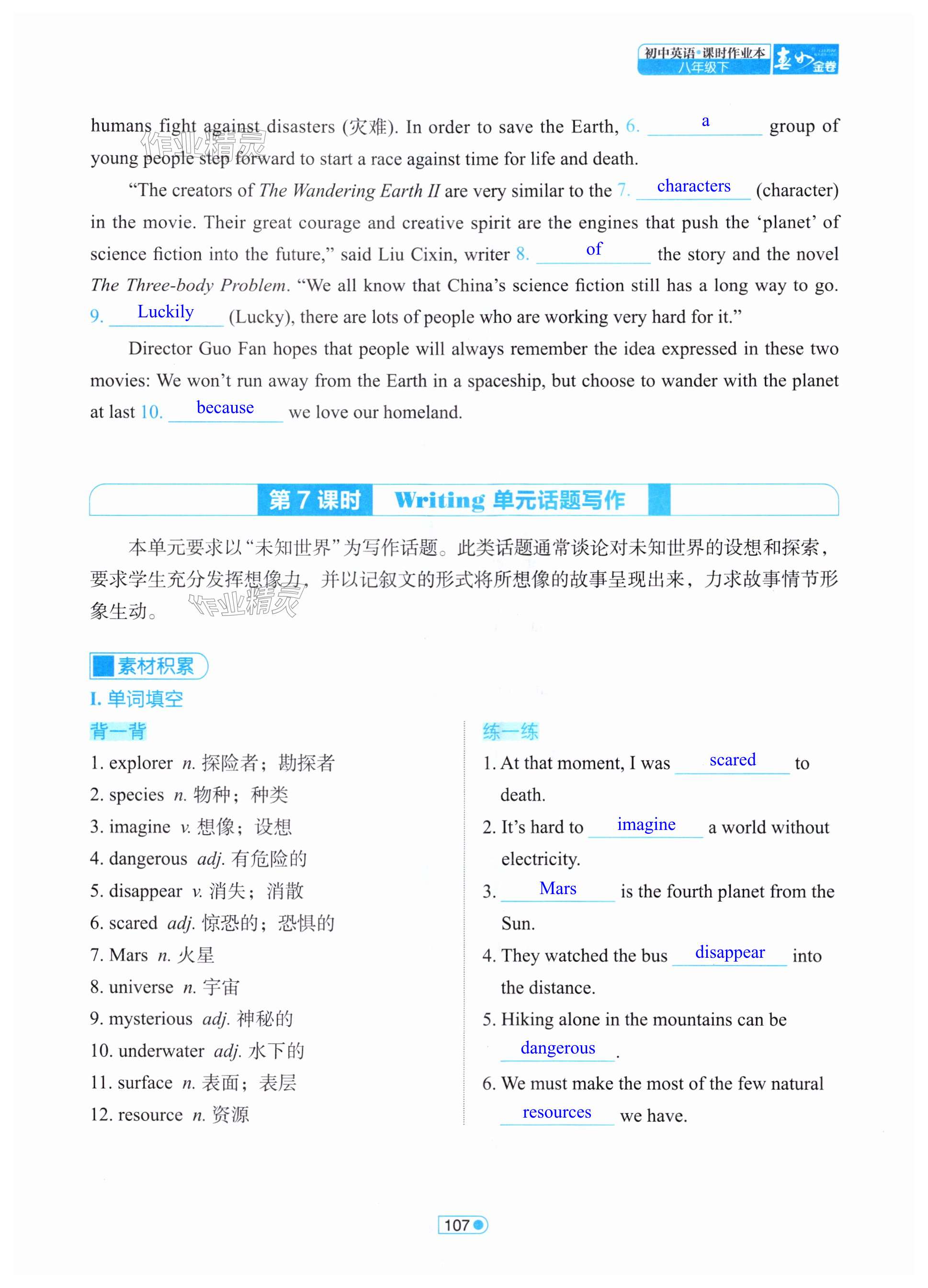 注:目前有些书本章节名称可能整理的还不是很完善,但都是按照顺序排列的,请同学们按照顺序仔细查找。练习册 2024年春如金卷课时作业本八年级英语下册沪教版 答案主要是用来给同学们做完题方便对答案用的,请勿直接抄袭。
