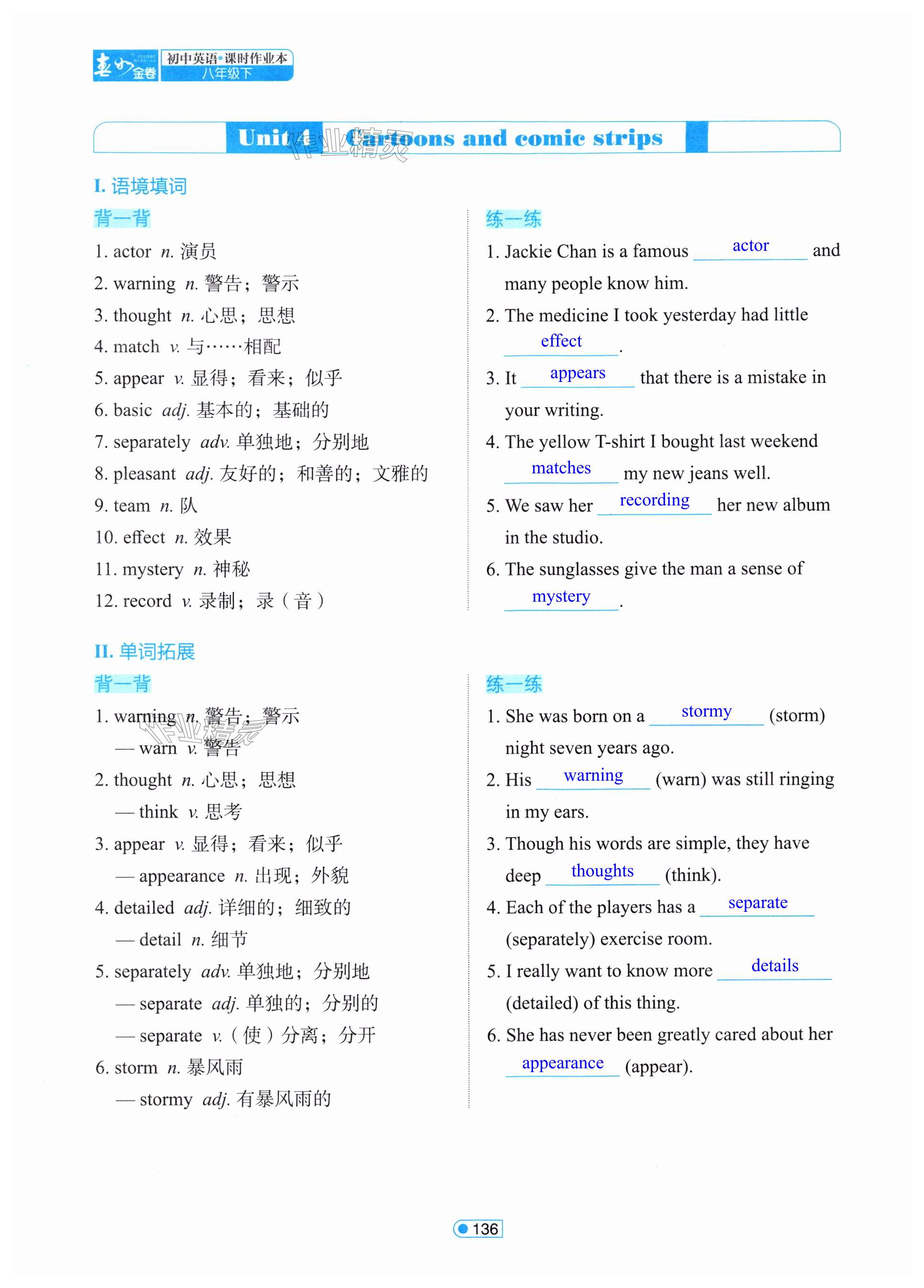 注:目前有些书本章节名称可能整理的还不是很完善,但都是按照顺序排列的,请同学们按照顺序仔细查找。练习册 2024年春如金卷课时作业本八年级英语下册沪教版 答案主要是用来给同学们做完题方便对答案用的,请勿直接抄袭。