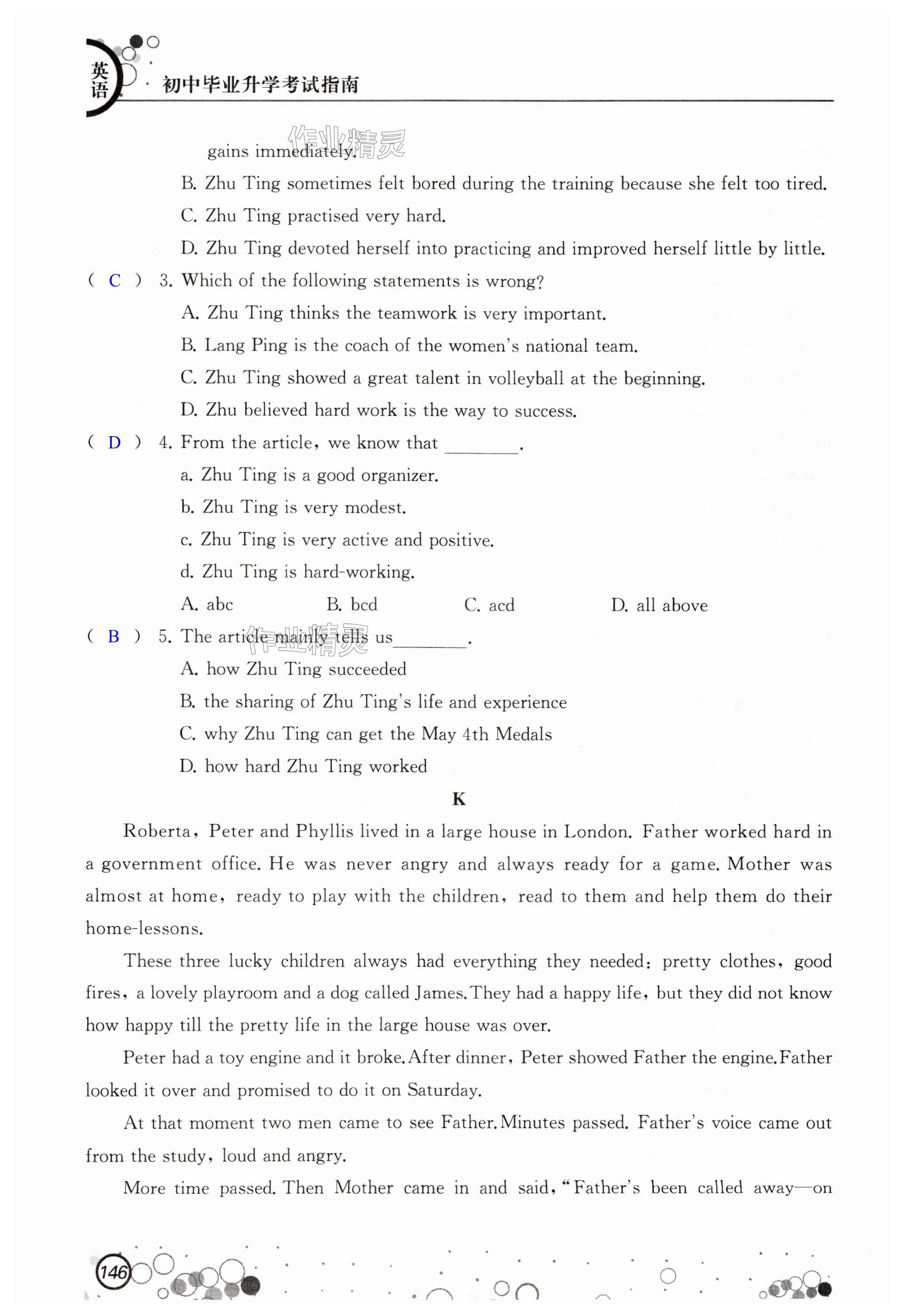 注:目前有些书本章节名称可能整理的还不是很完善,但都是按照顺序排列的,请同学们按照顺序仔细查找。练习册 2024年初中毕业升学考试指南英语 答案主要是用来给同学们做完题方便对答案用的,请勿直接抄袭。