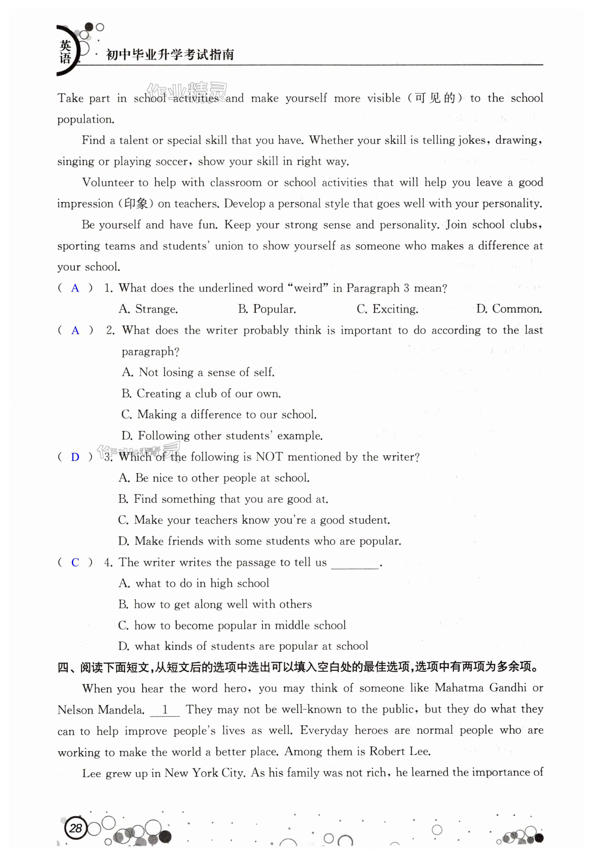注:目前有些书本章节名称可能整理的还不是很完善,但都是按照顺序排列的,请同学们按照顺序仔细查找。练习册 2024年初中毕业升学考试指南英语 答案主要是用来给同学们做完题方便对答案用的,请勿直接抄袭。