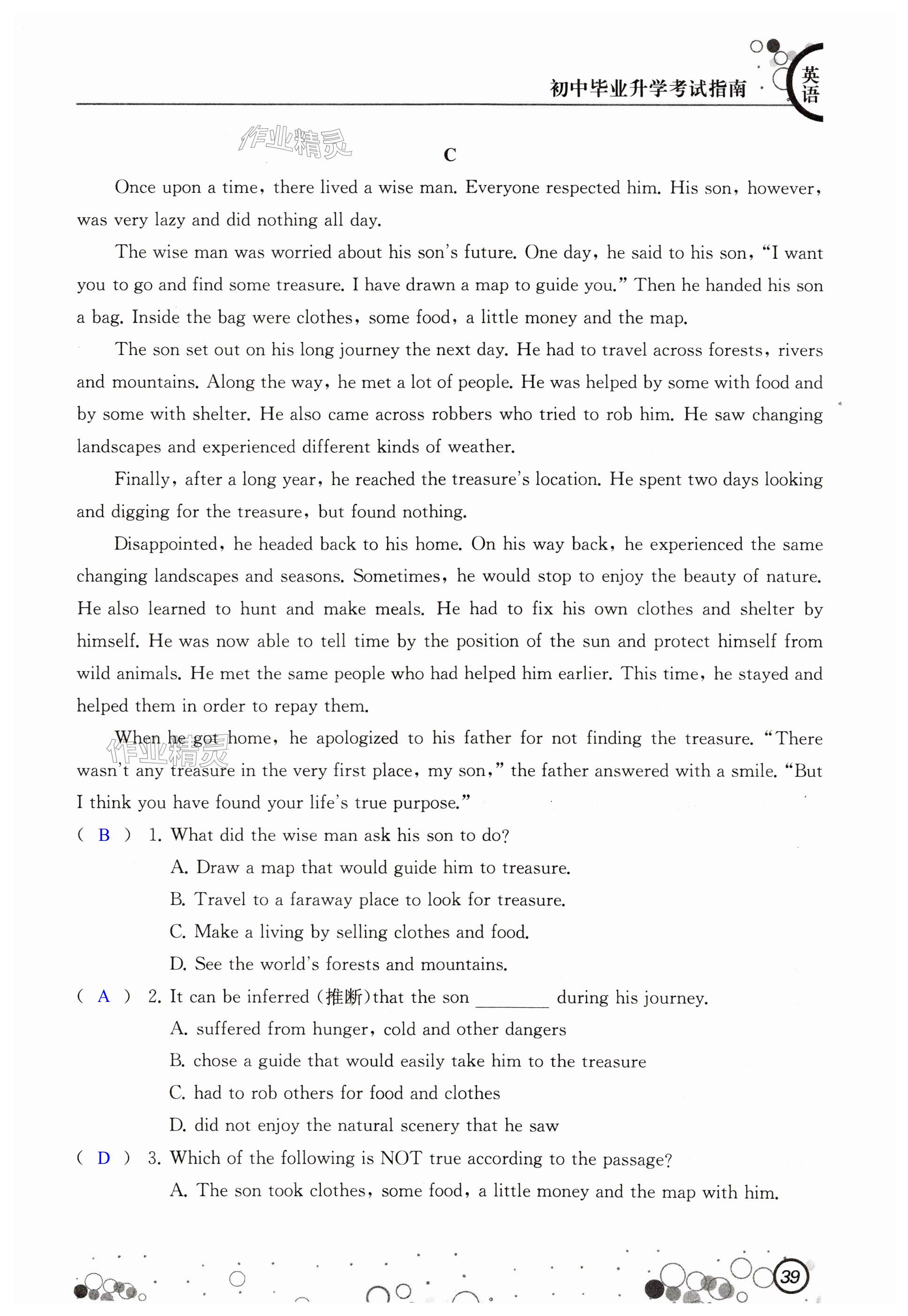 注:目前有些书本章节名称可能整理的还不是很完善,但都是按照顺序排列的,请同学们按照顺序仔细查找。练习册 2024年初中毕业升学考试指南英语 答案主要是用来给同学们做完题方便对答案用的,请勿直接抄袭。