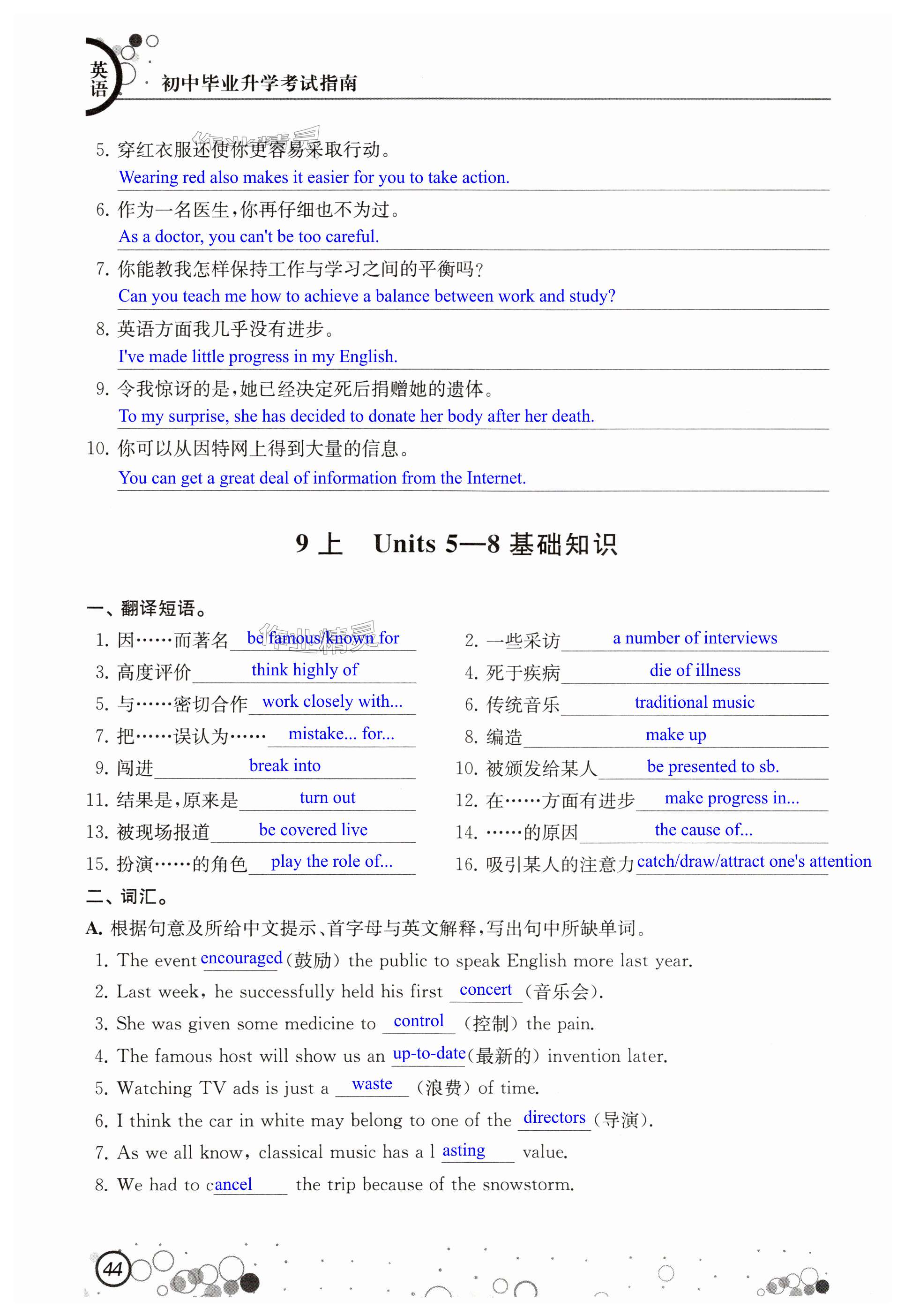 注:目前有些书本章节名称可能整理的还不是很完善,但都是按照顺序排列的,请同学们按照顺序仔细查找。练习册 2024年初中毕业升学考试指南英语 答案主要是用来给同学们做完题方便对答案用的,请勿直接抄袭。